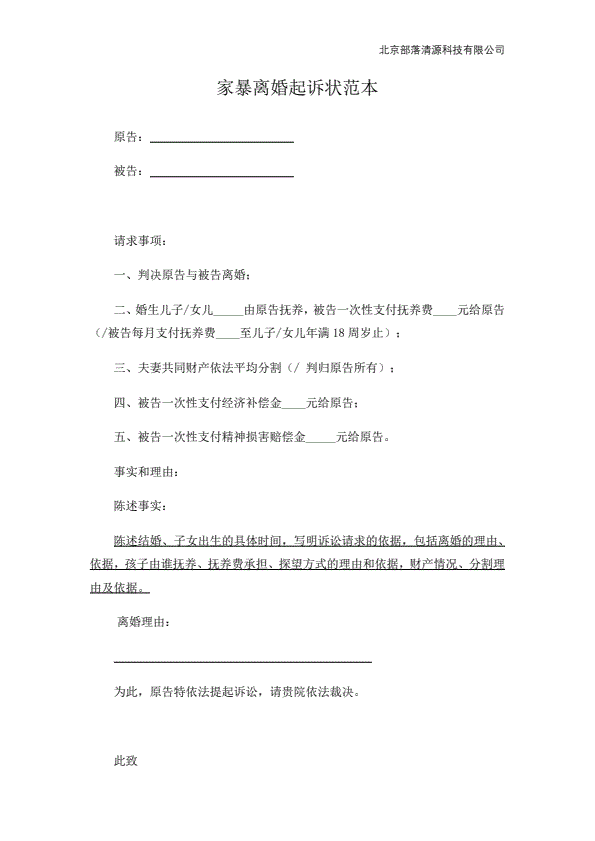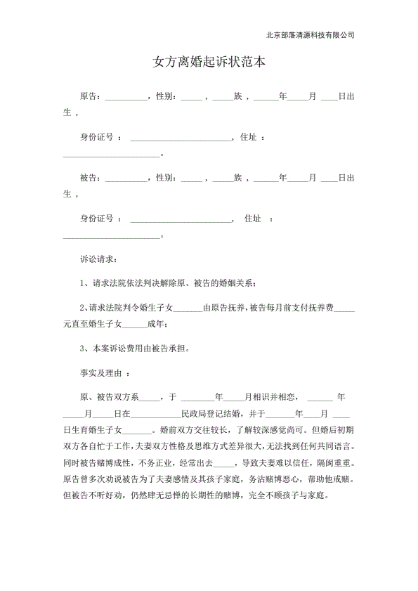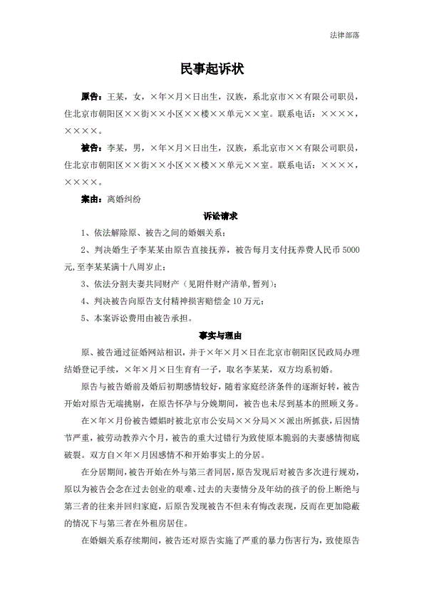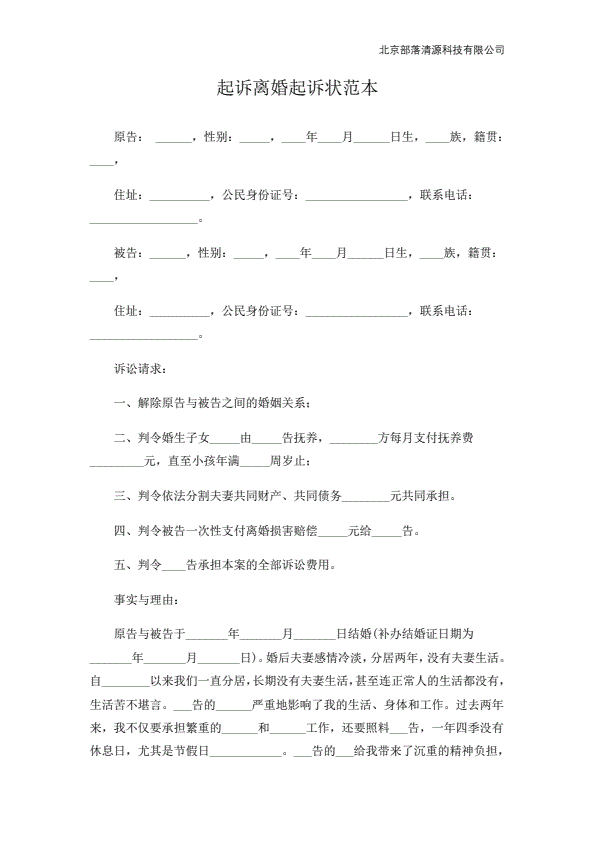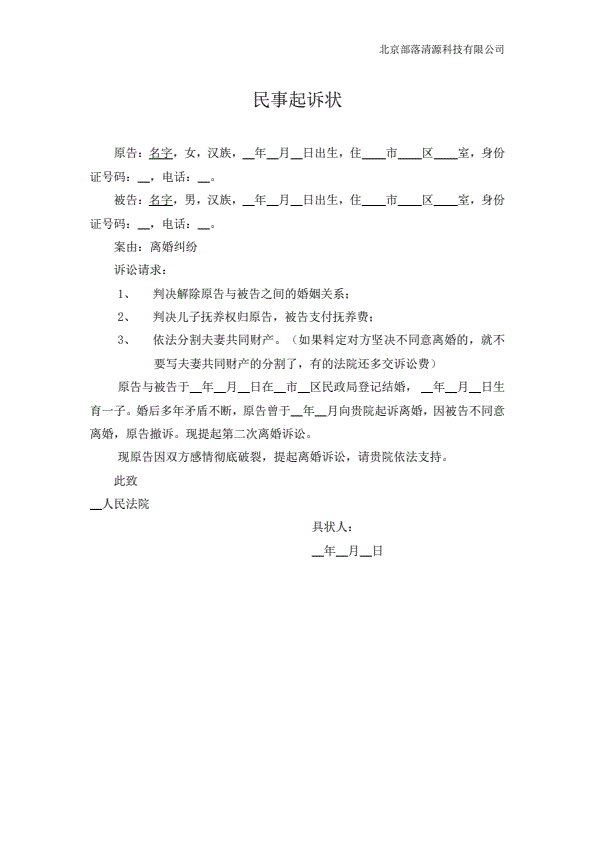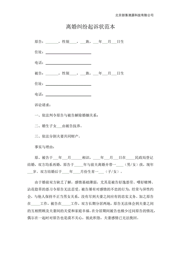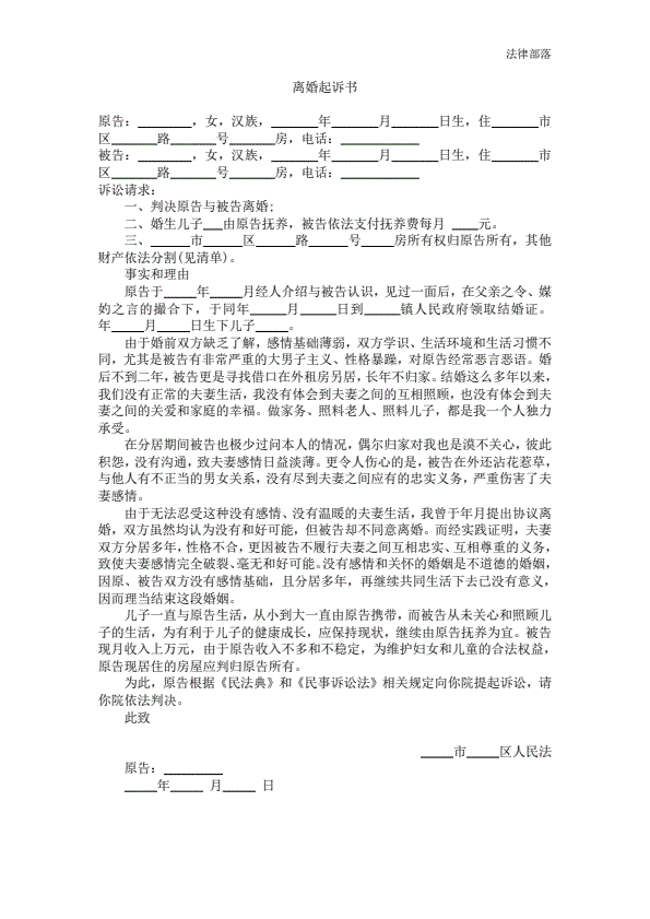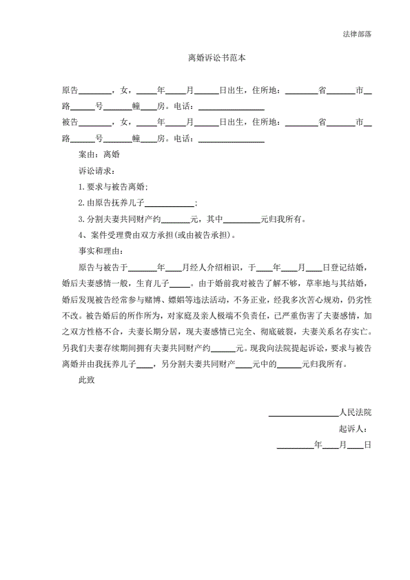离婚起诉书范本