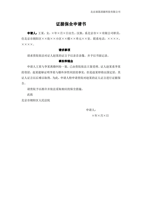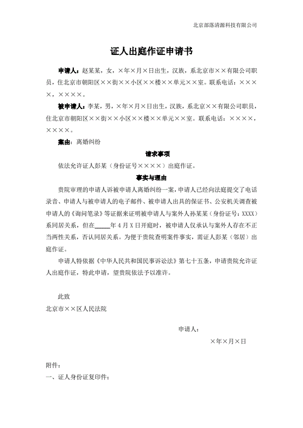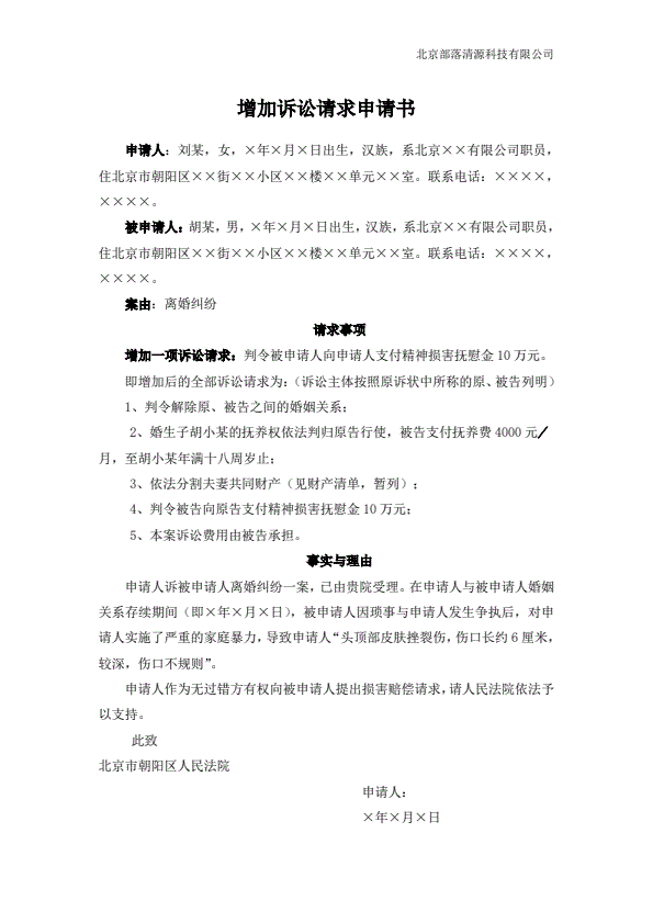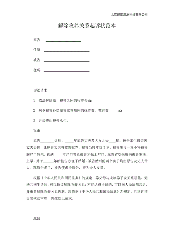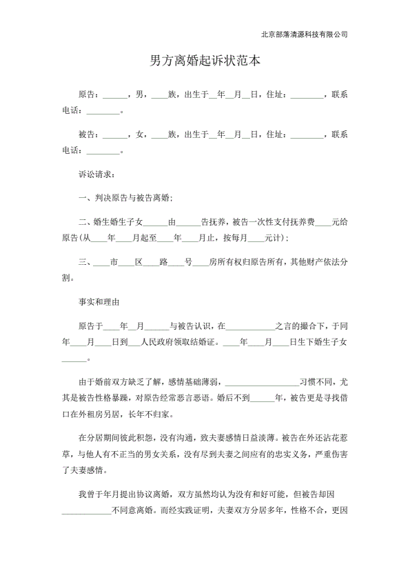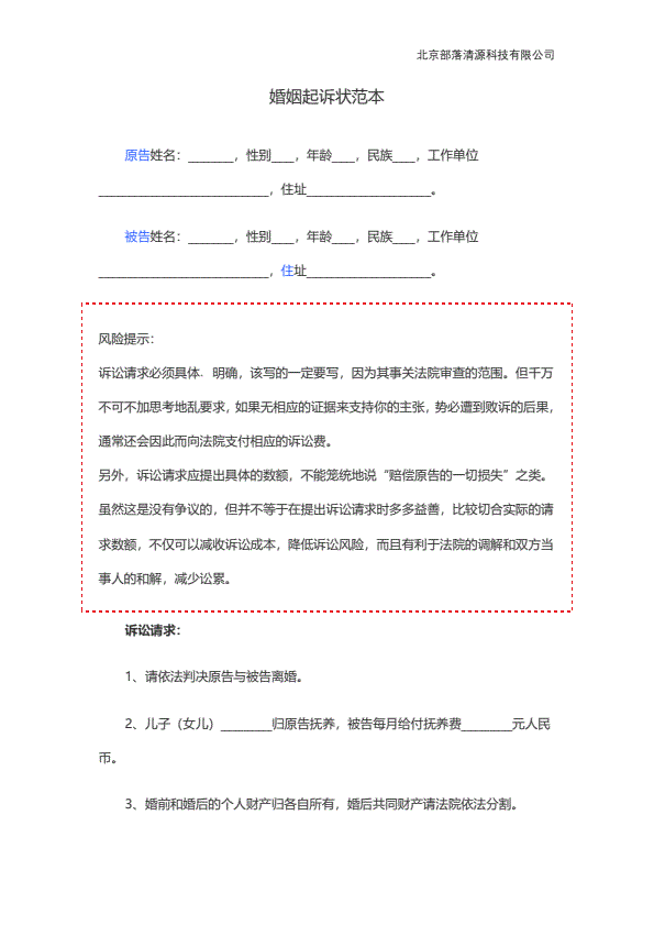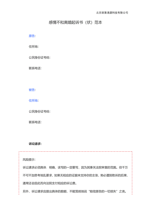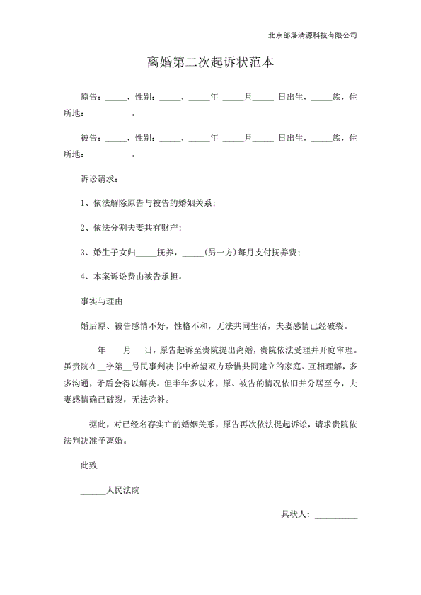 离婚起诉书范本