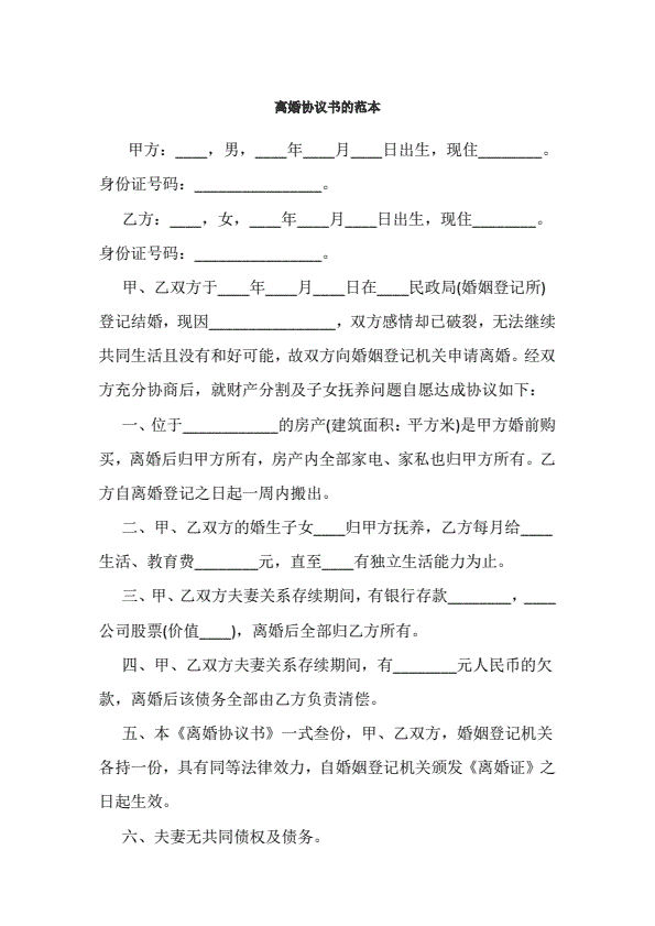 离婚协议书注意要点