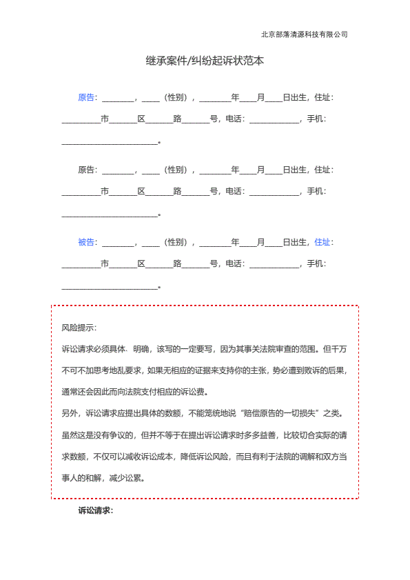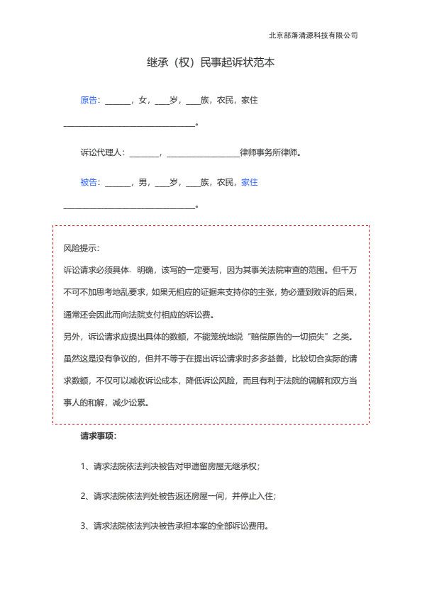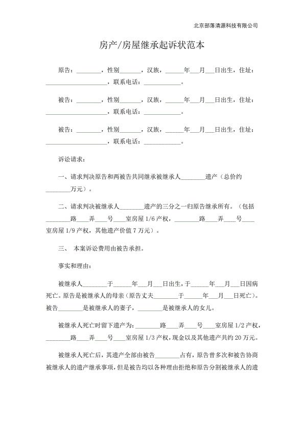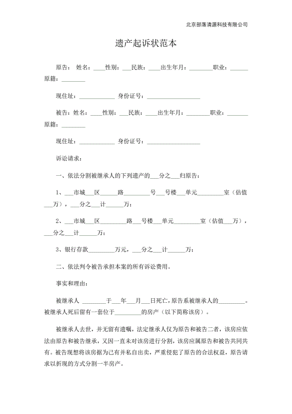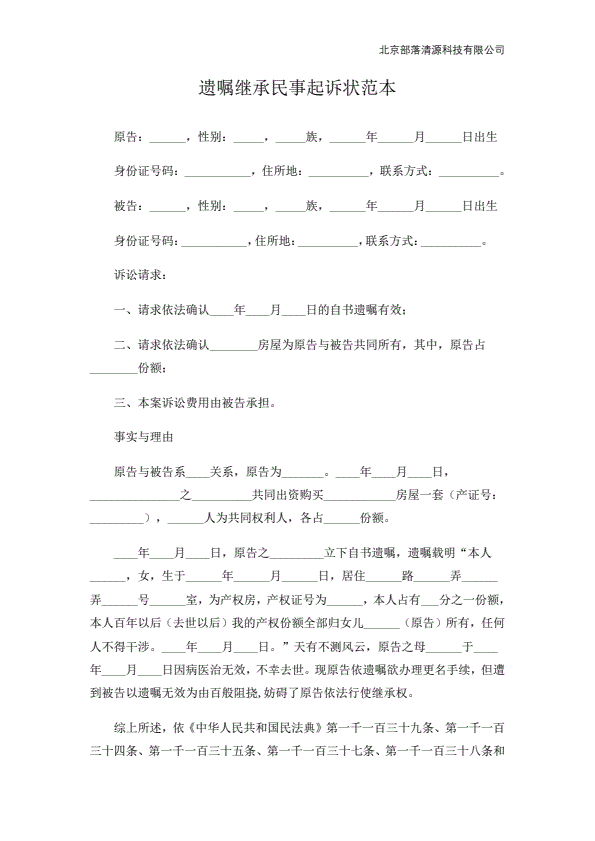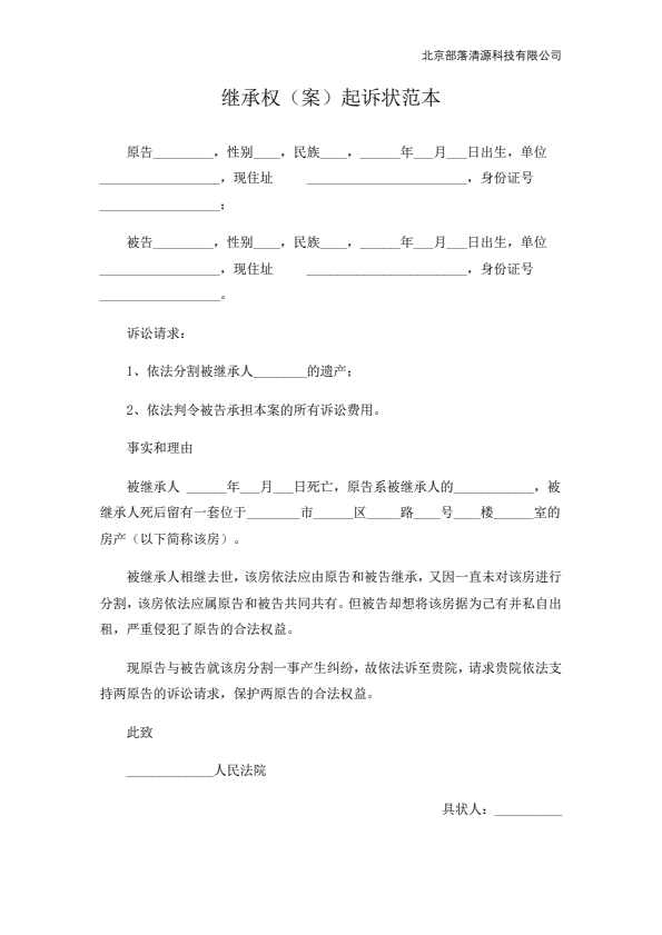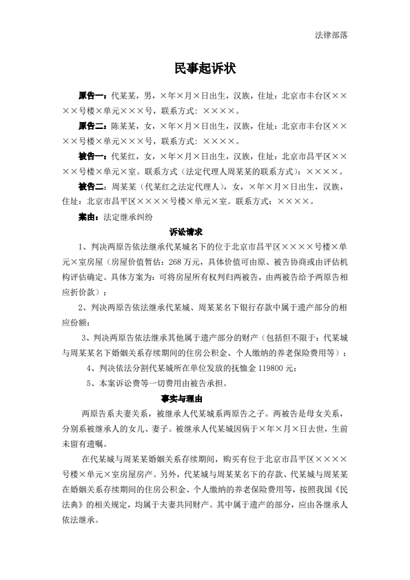 民事起诉状(继承)