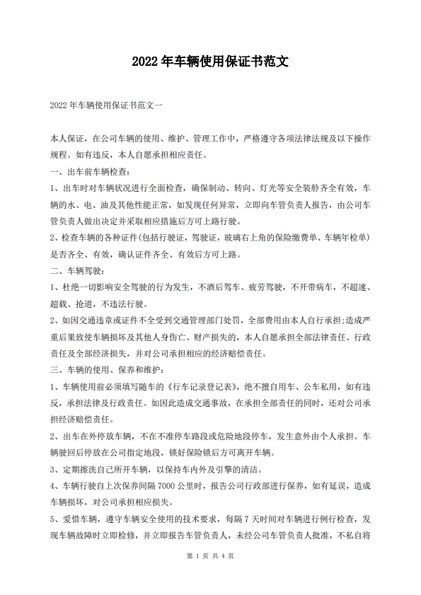 2022年车辆使用保证书范文