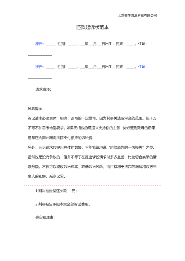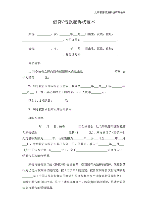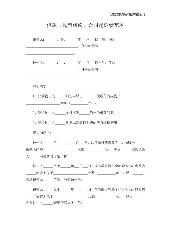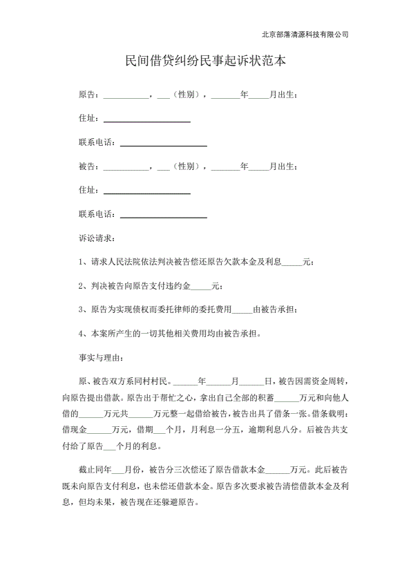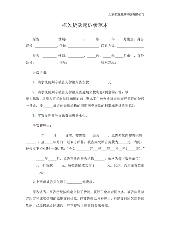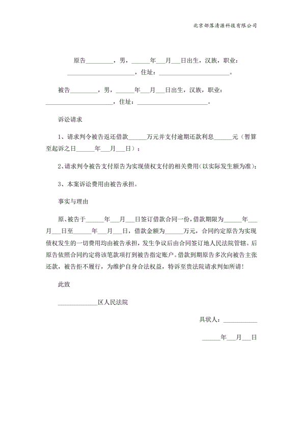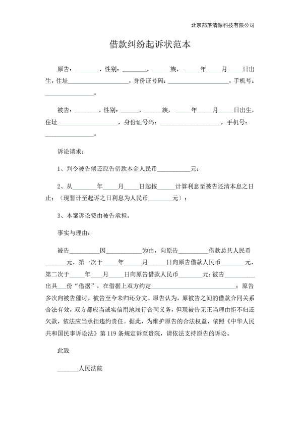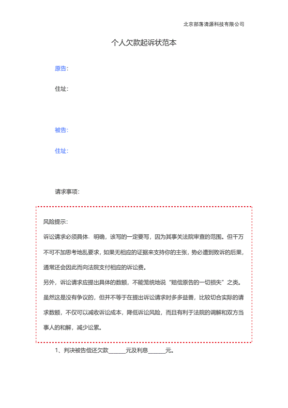 个人欠款起诉状范本
