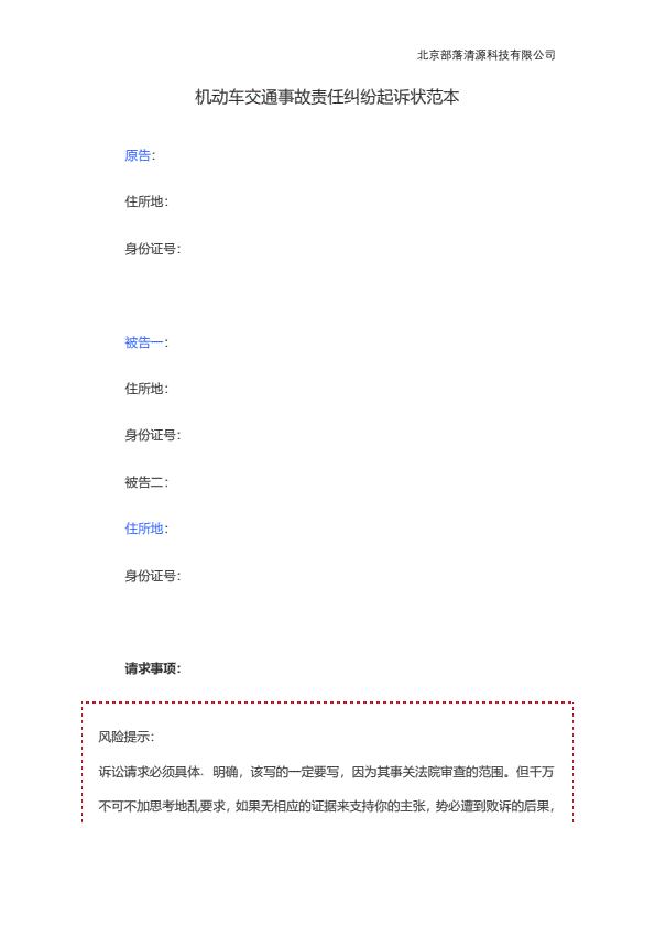机动车交通事故起诉状范本
