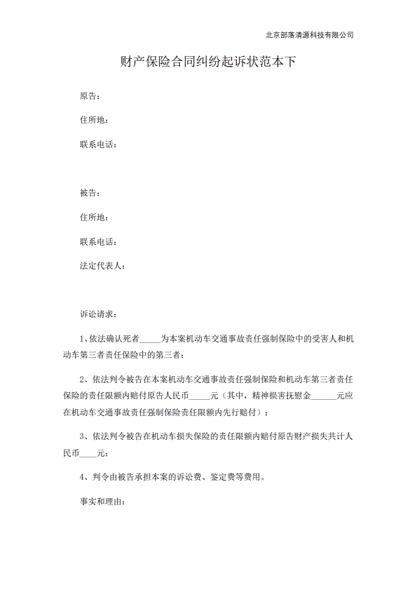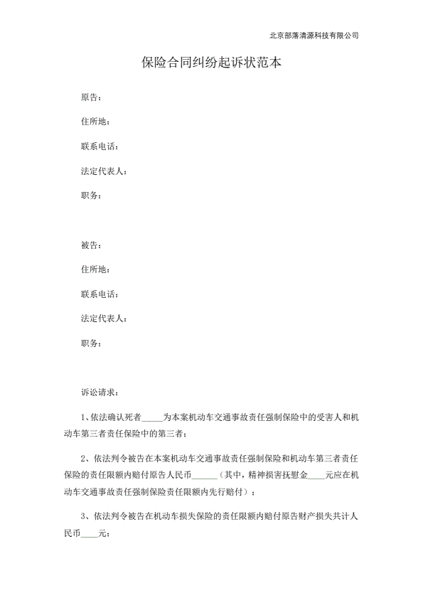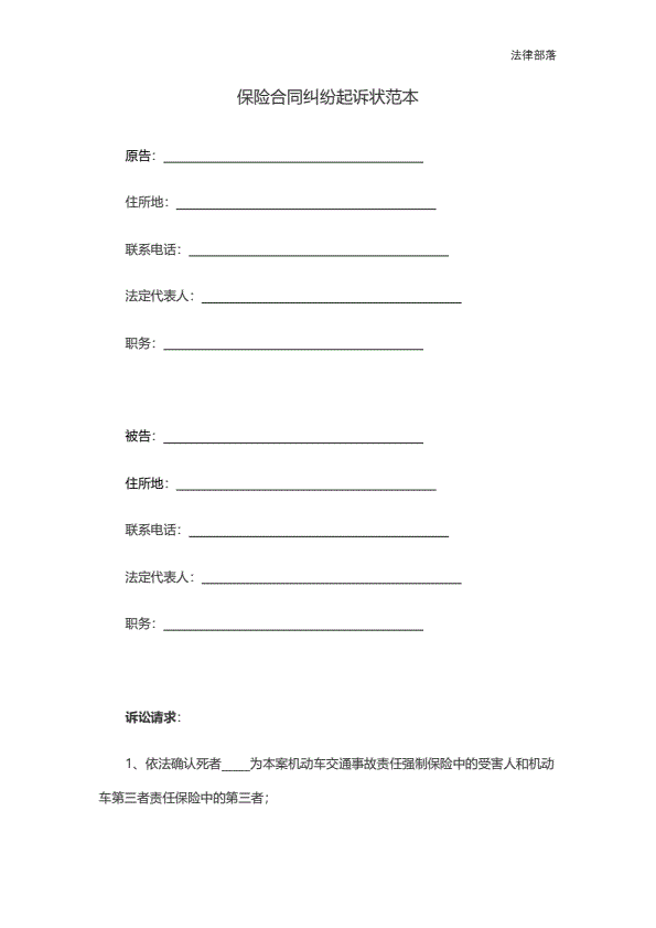 交通事故保险公司起诉状范本