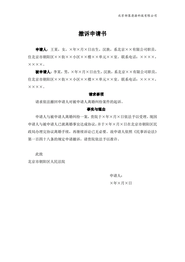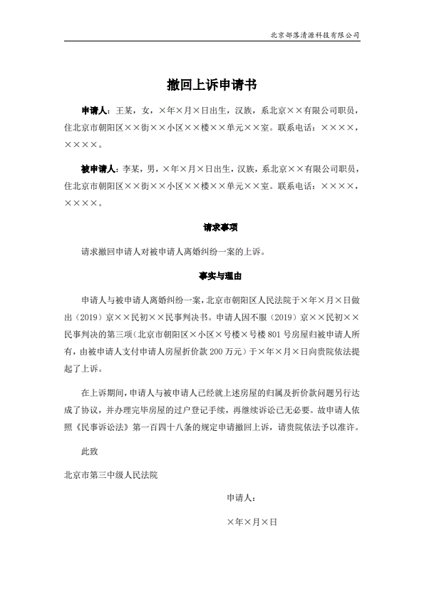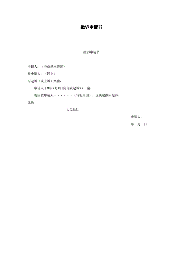撤回上诉申请书