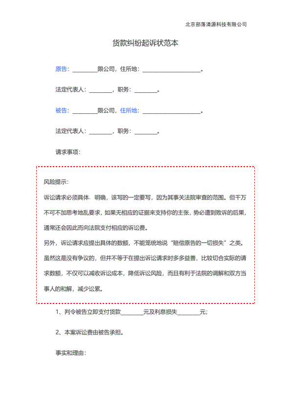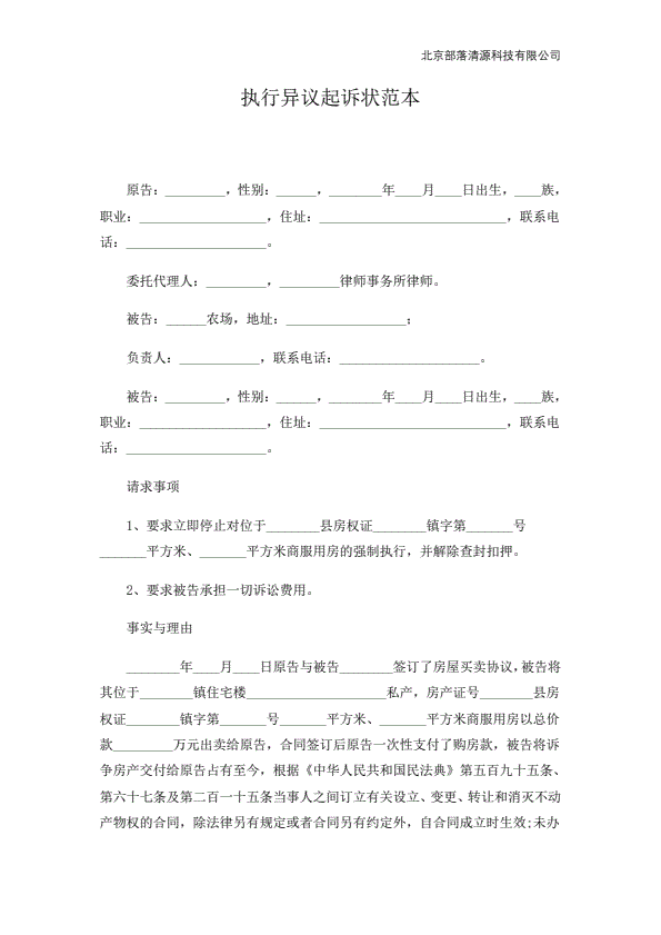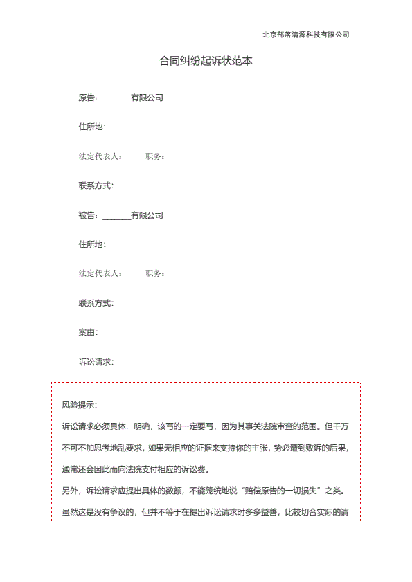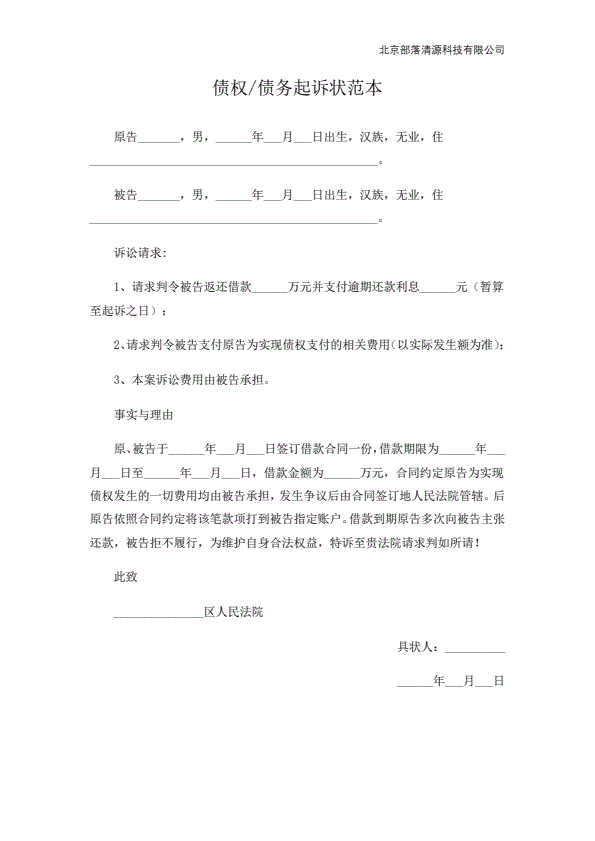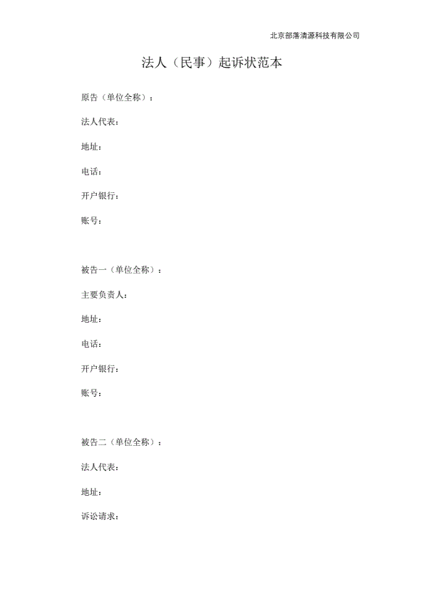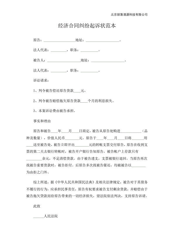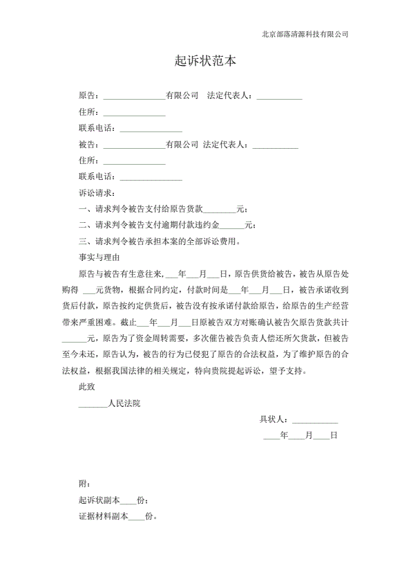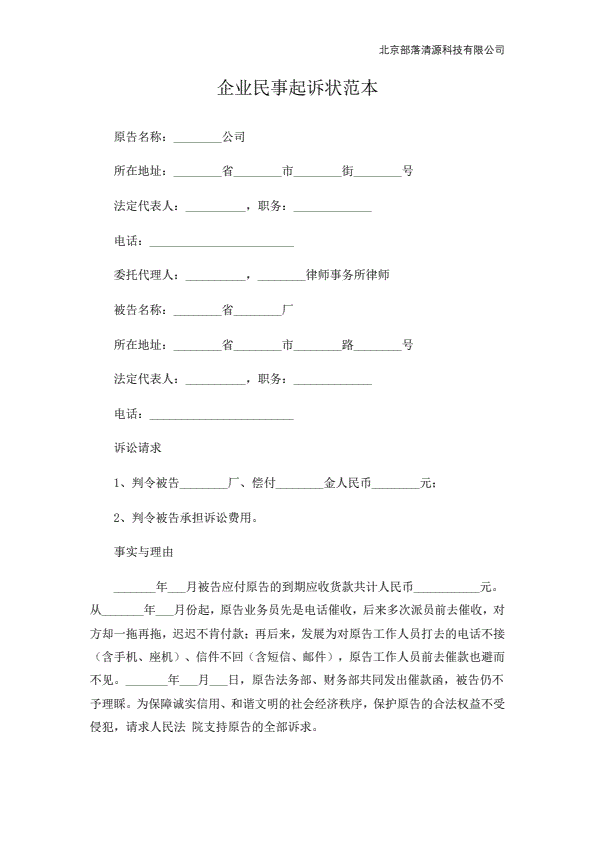 企业民事起诉状范本