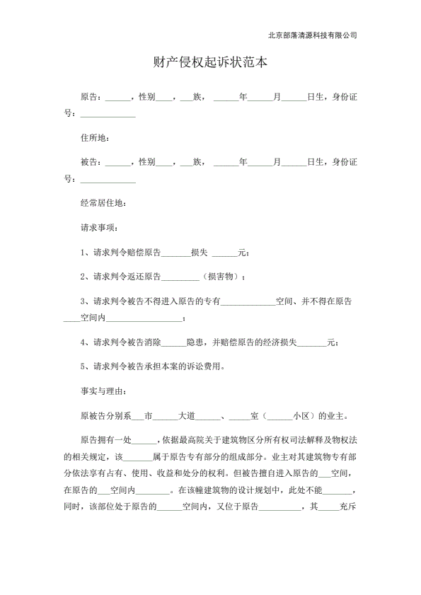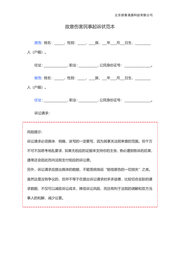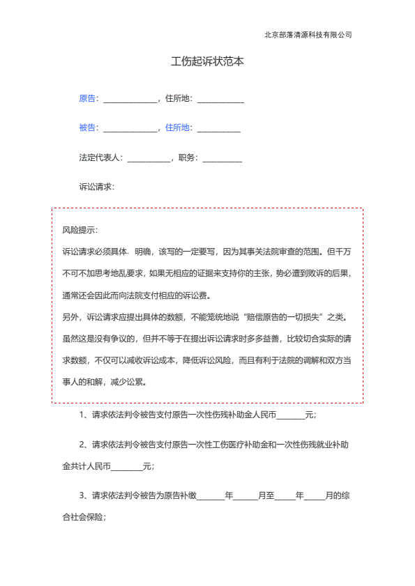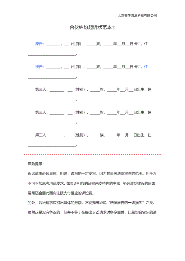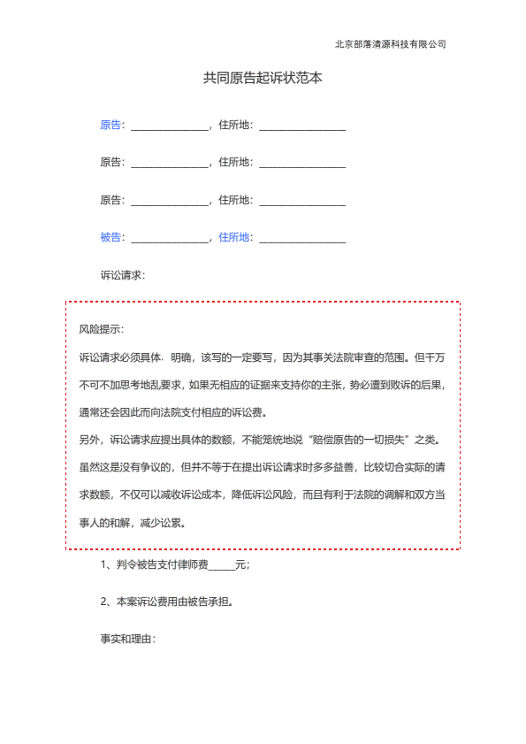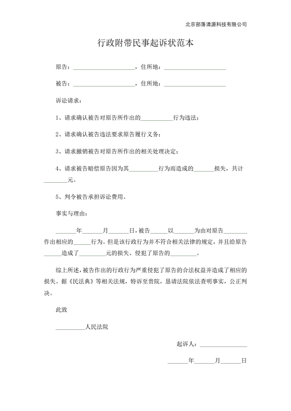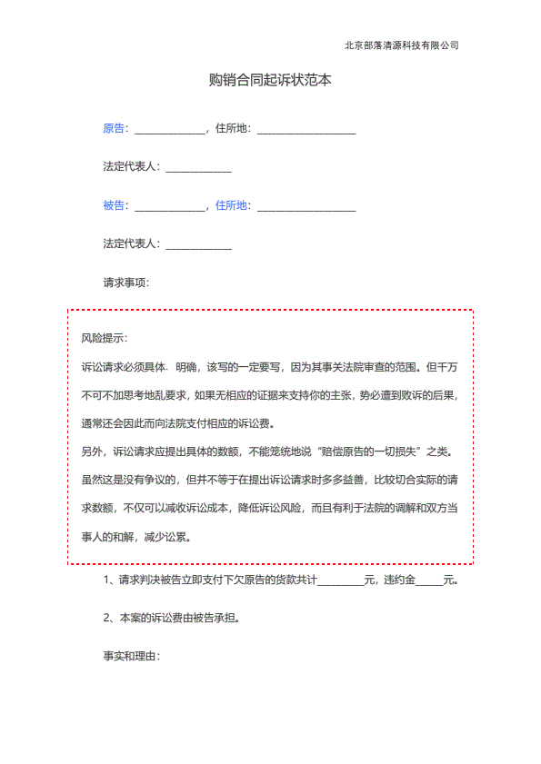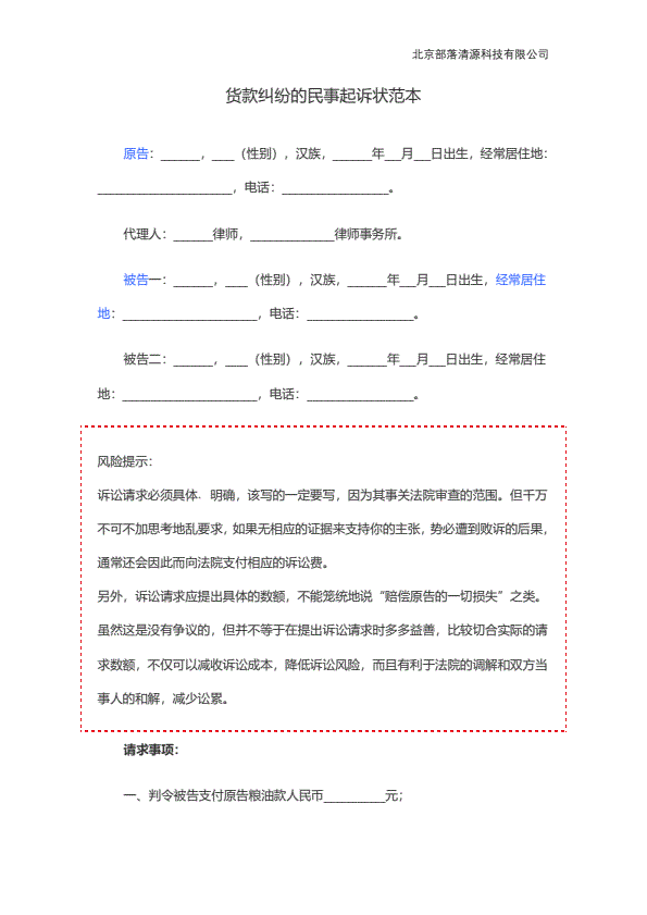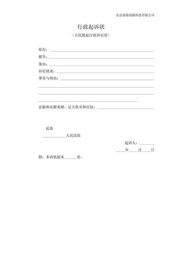企业民事起诉状范本