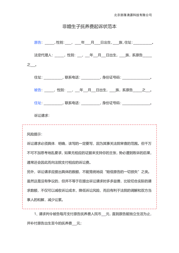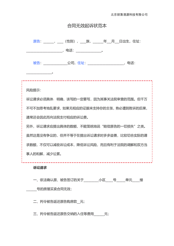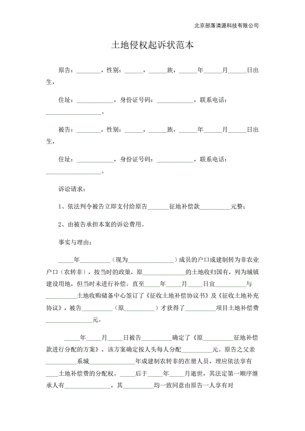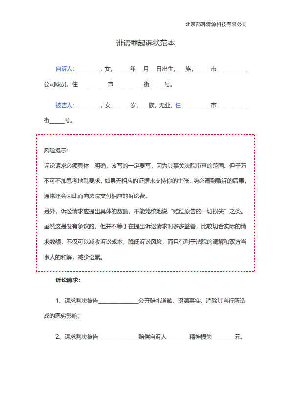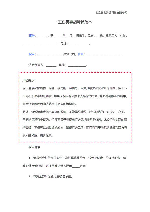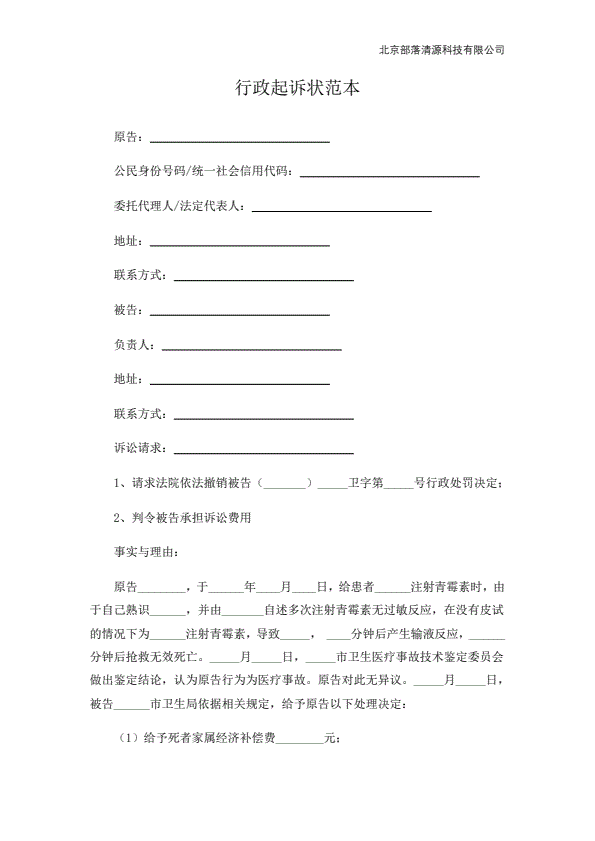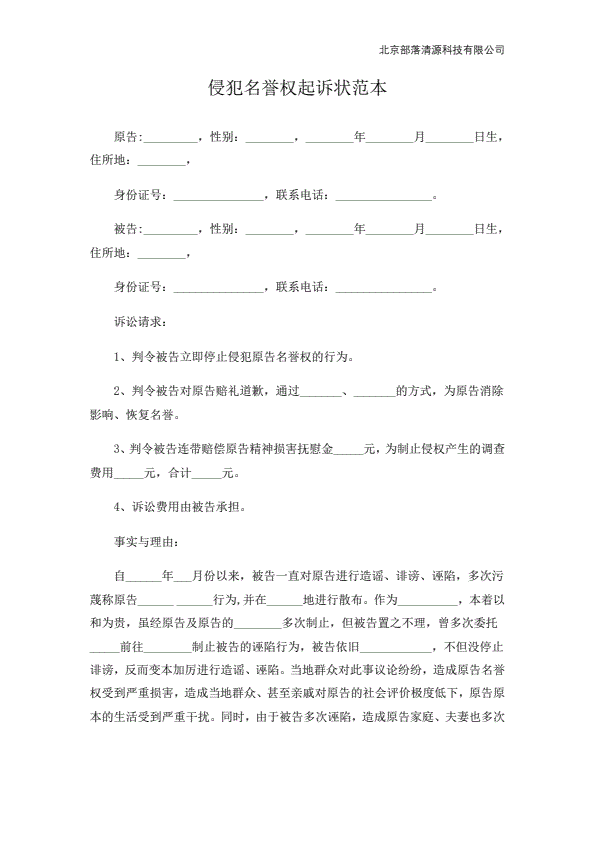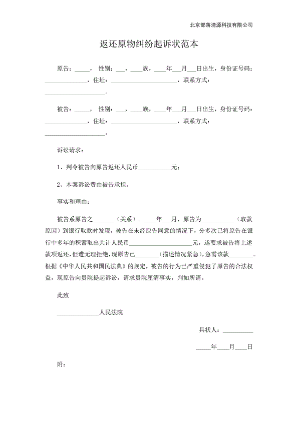 企业民事起诉状范本