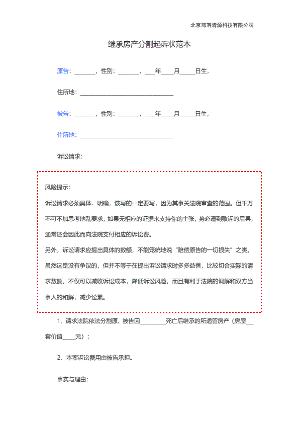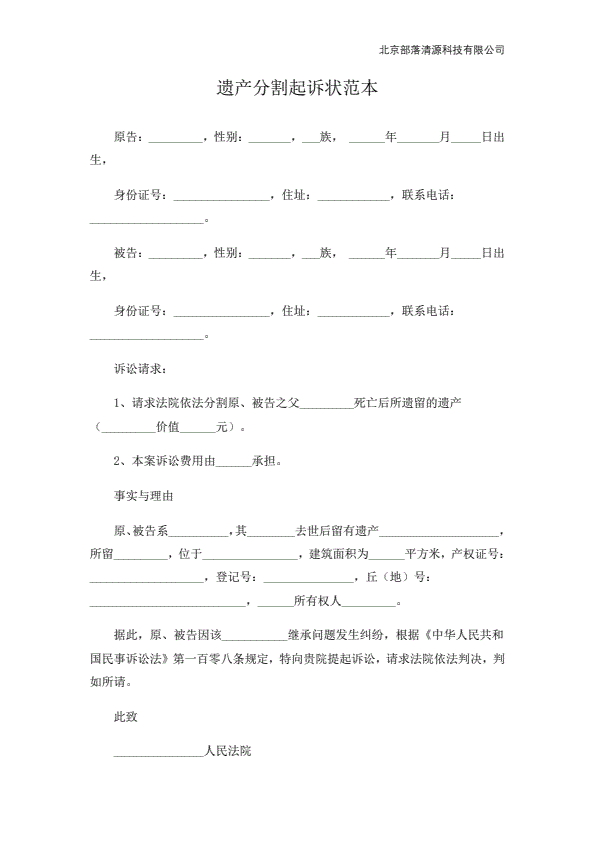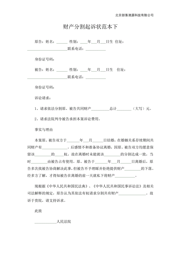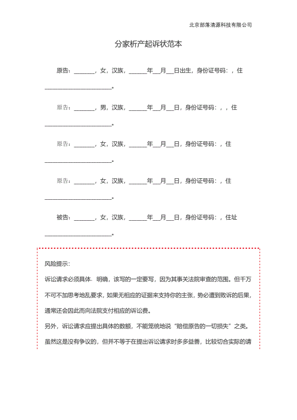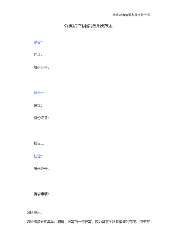 分家析产起诉状范本