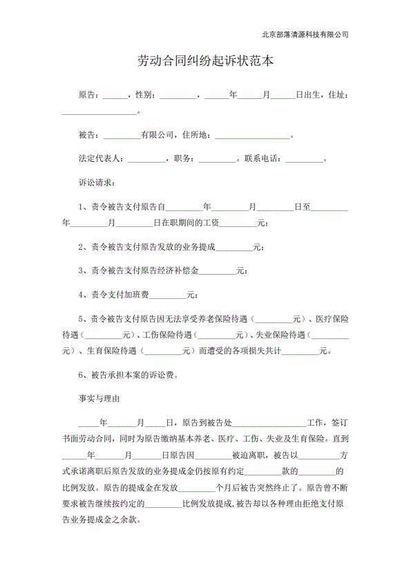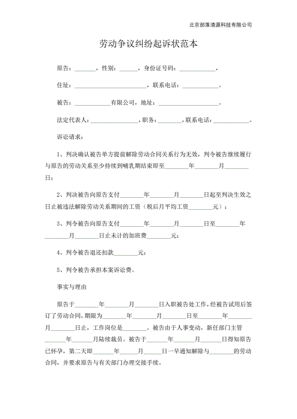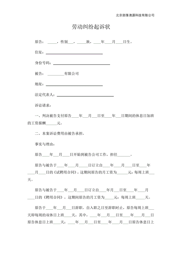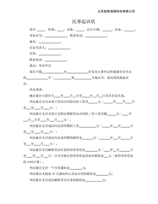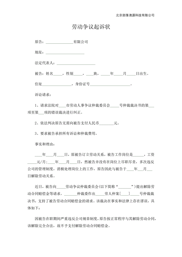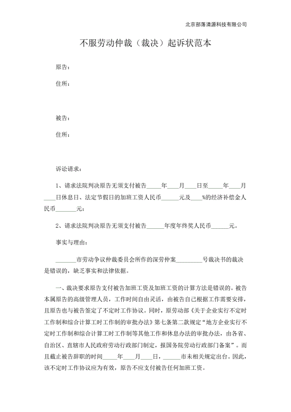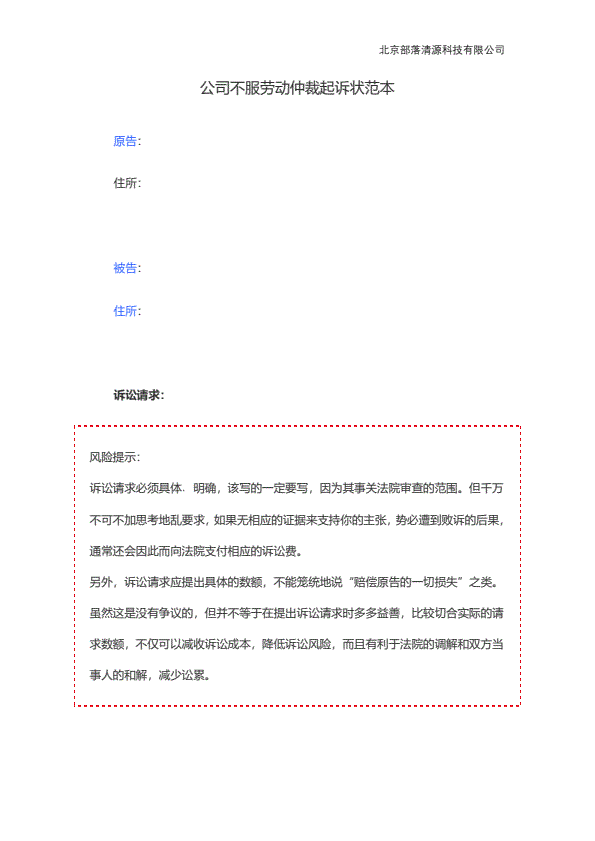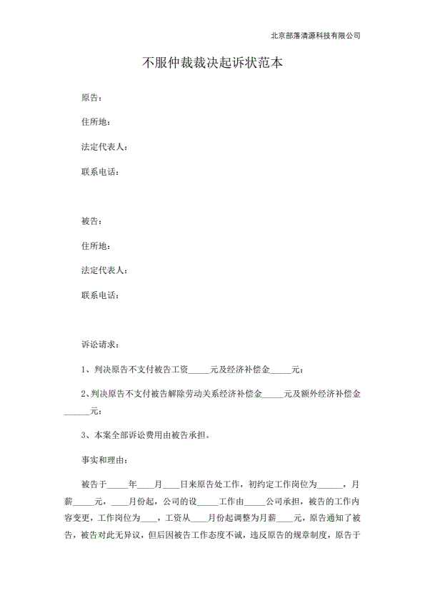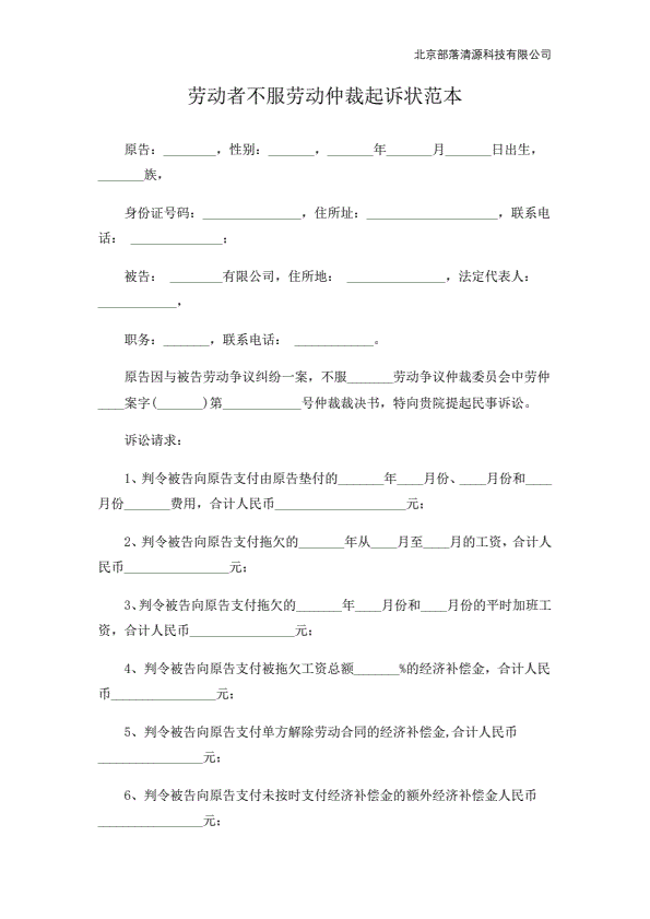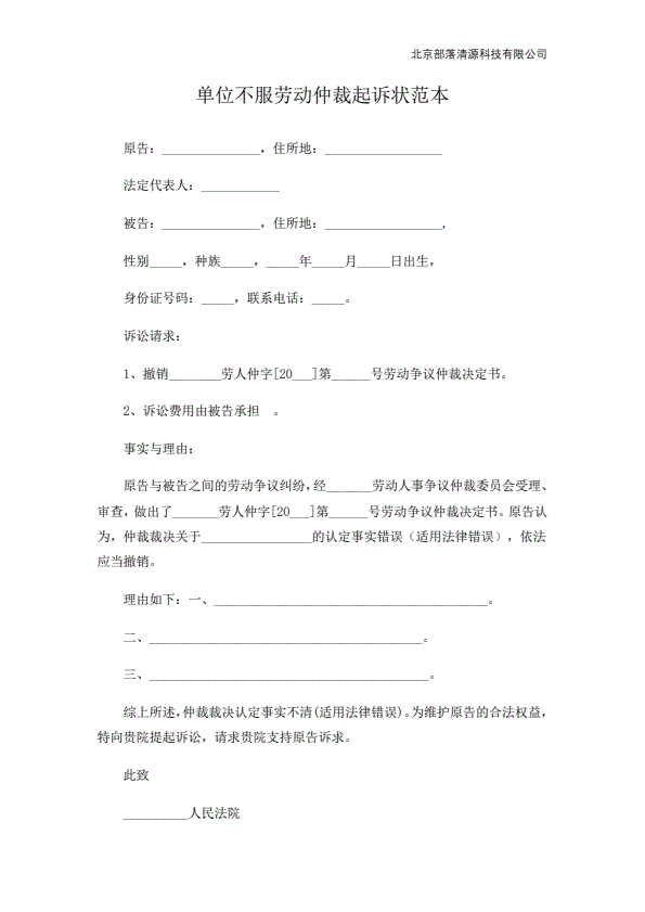 公司不服劳动仲裁起诉状范本