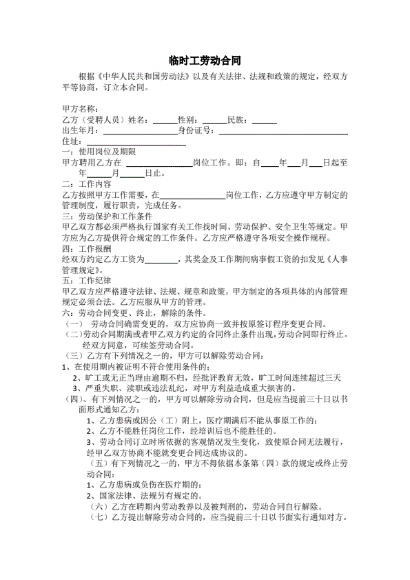 临时用工合同