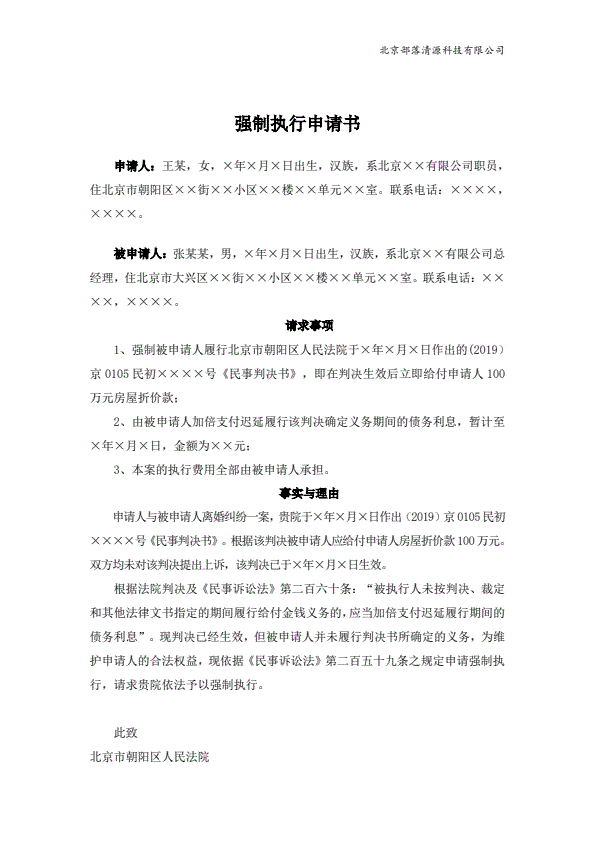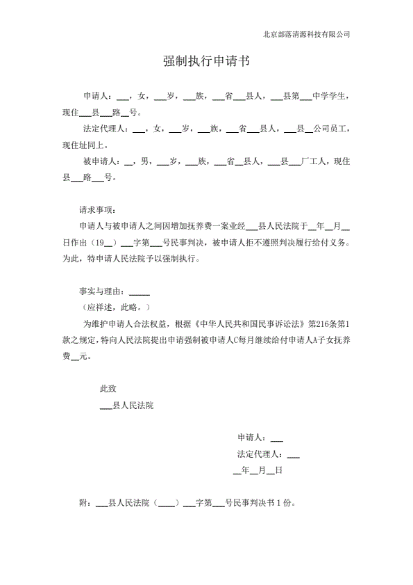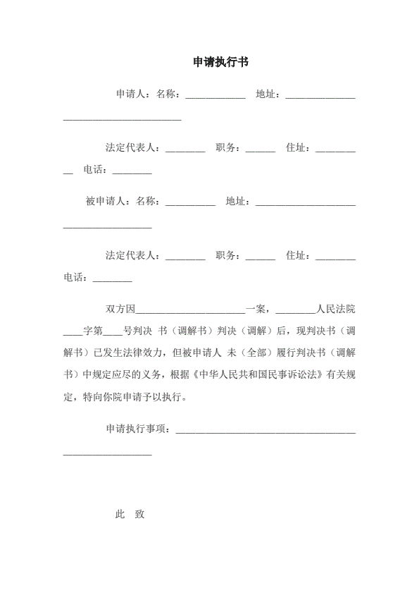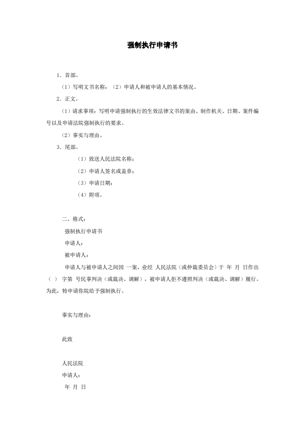 强制执行申请书范本