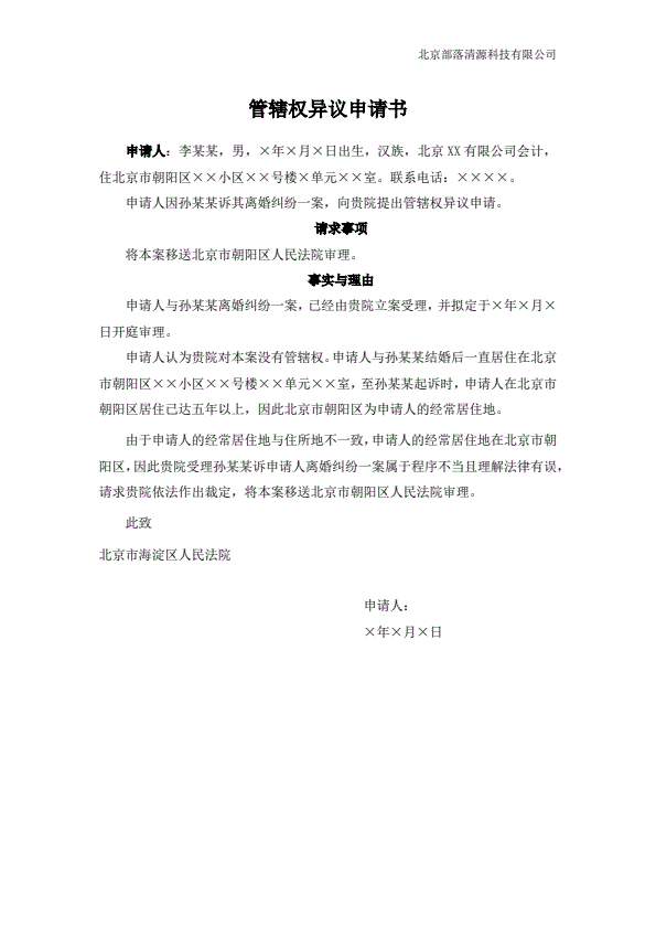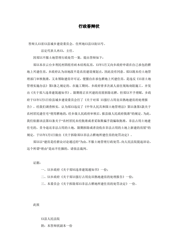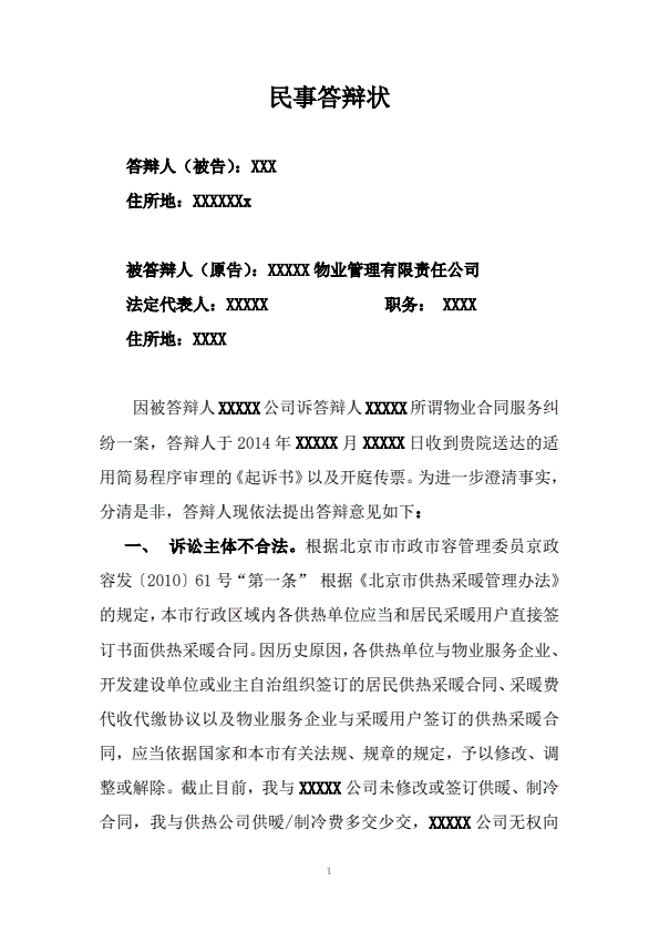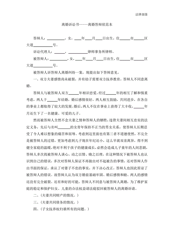 离婚答辩范本
