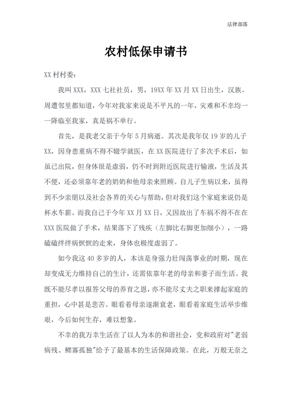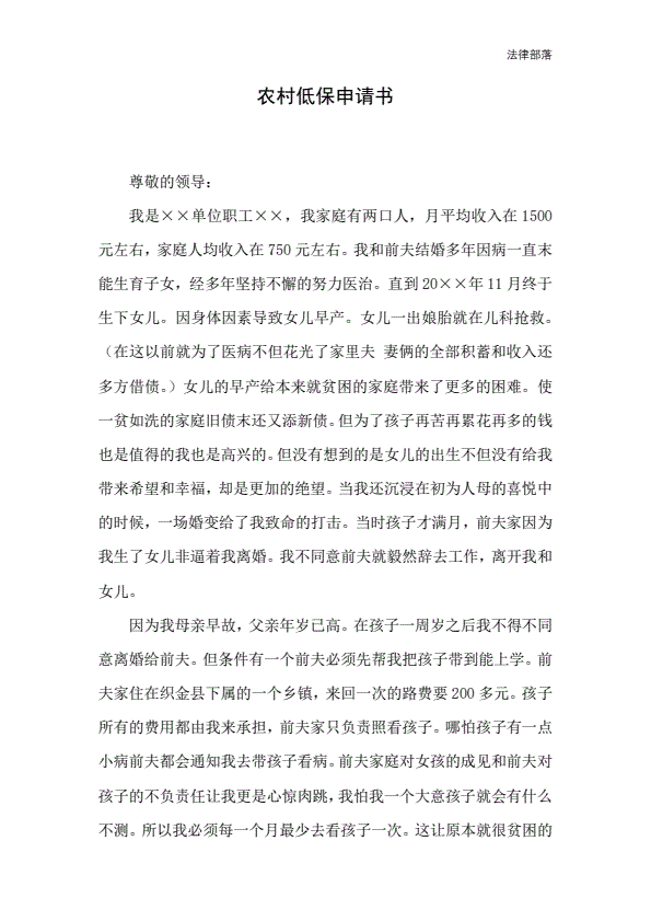 农村低保申请书参考版