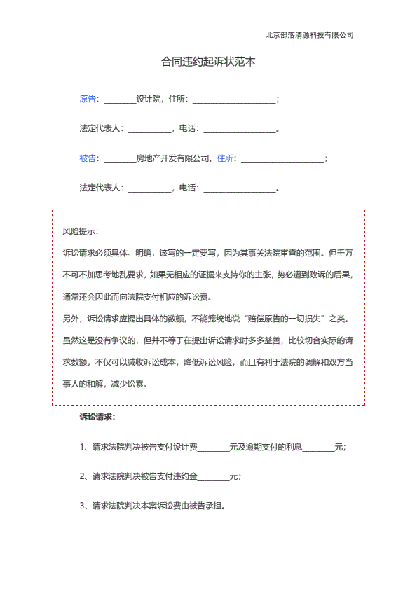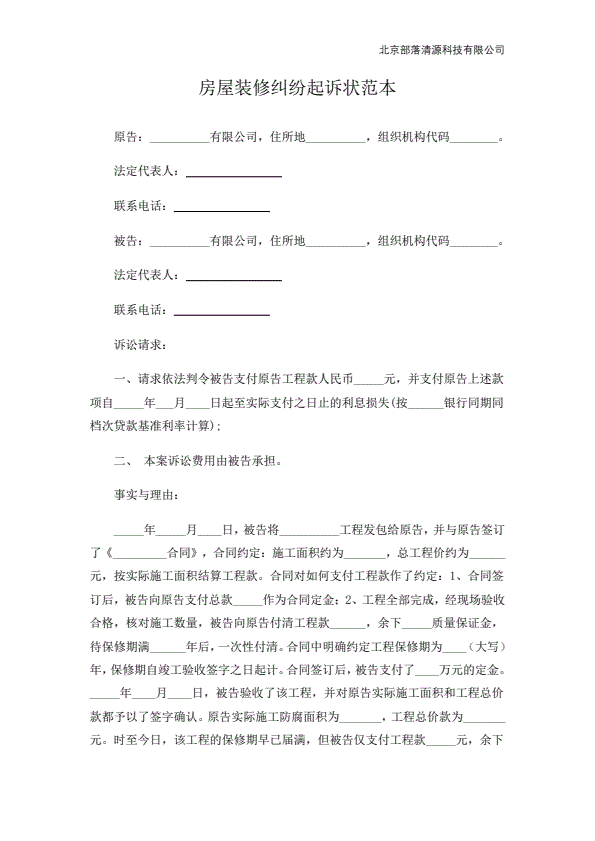 装修合同纠纷起诉状范本