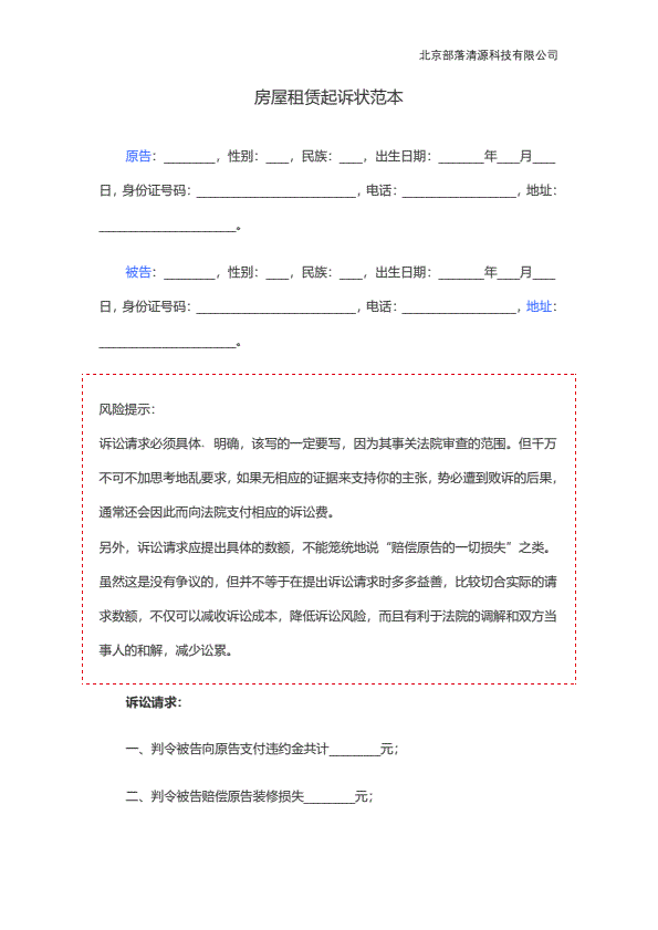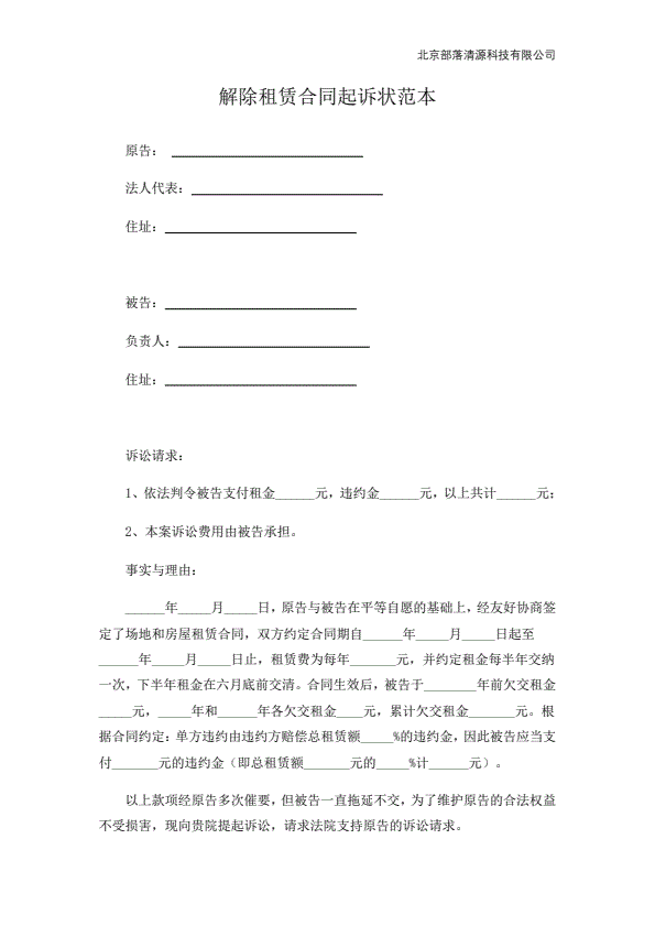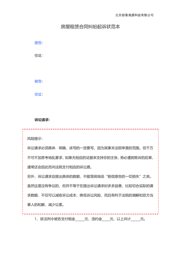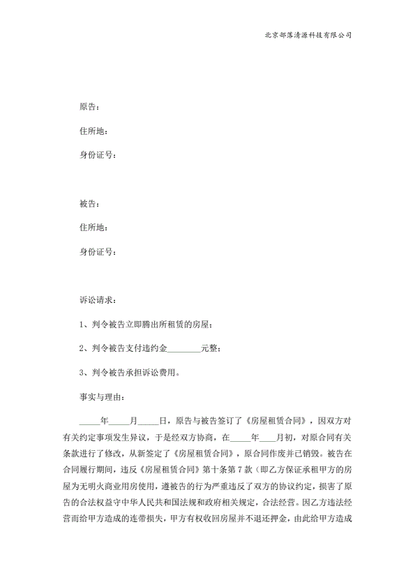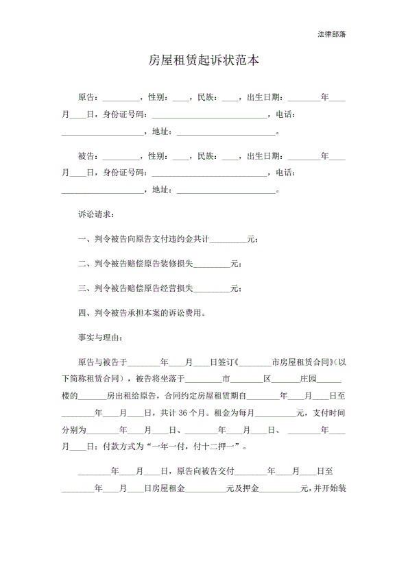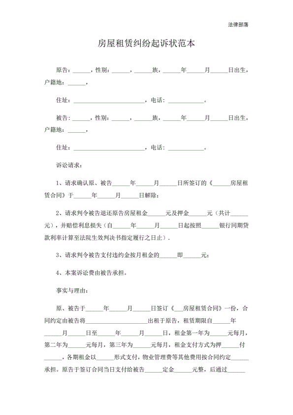 租房合同纠纷起诉状范本