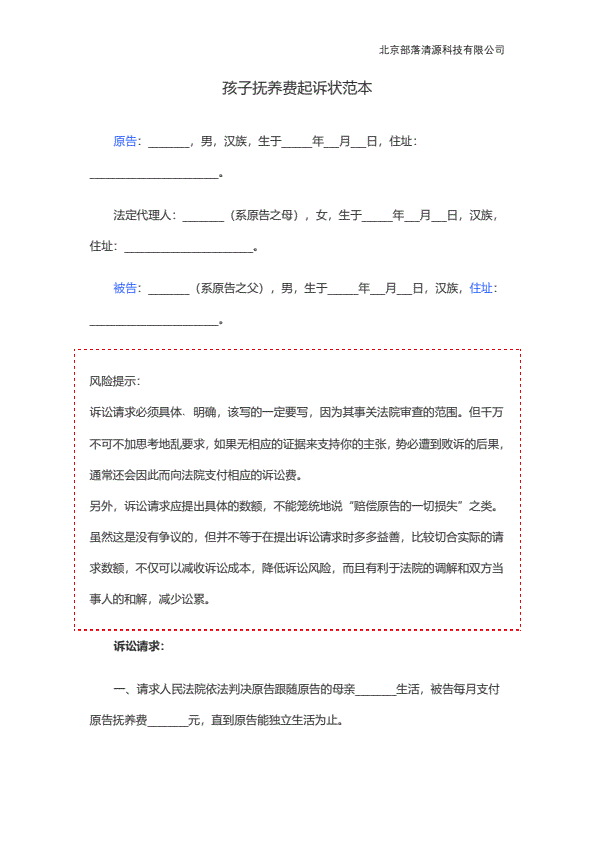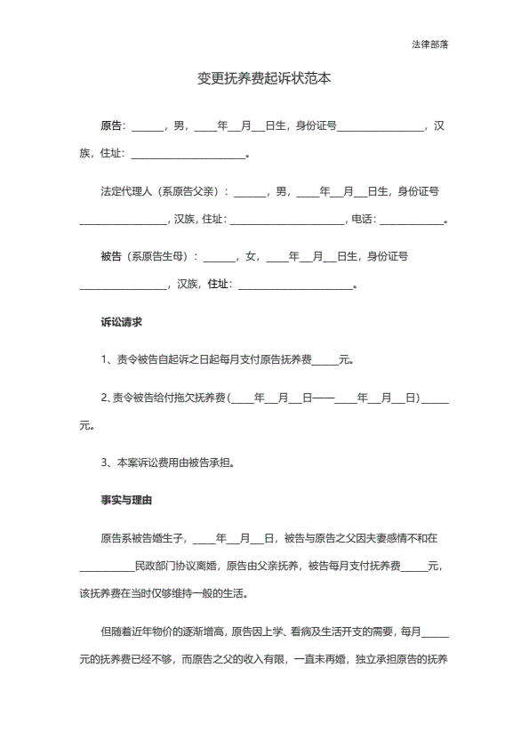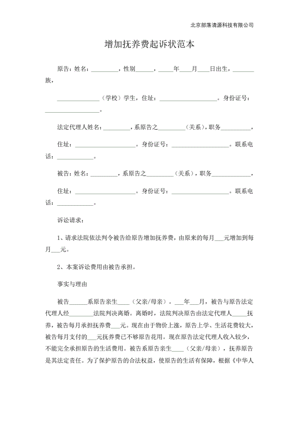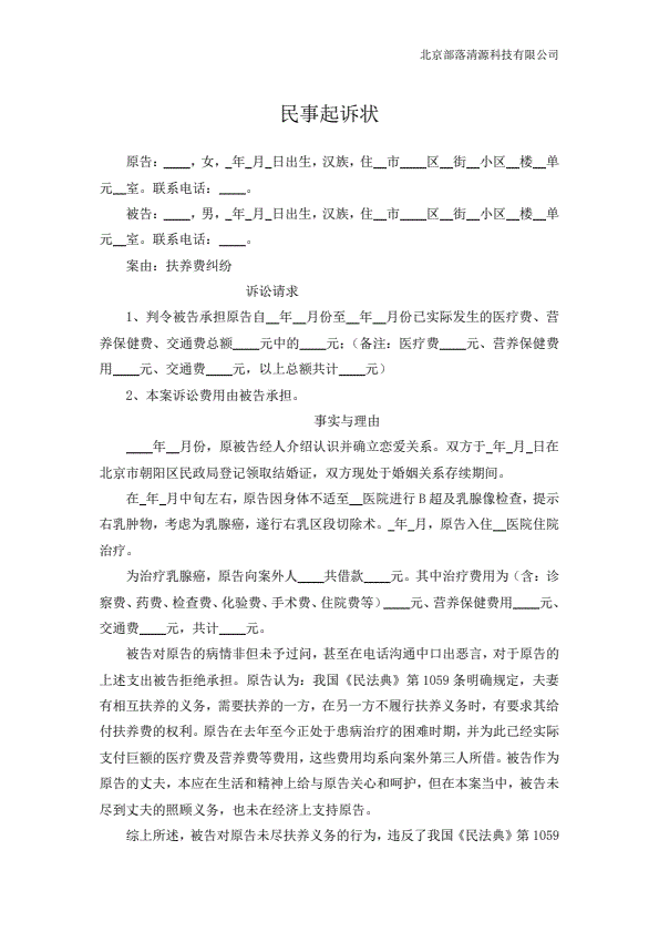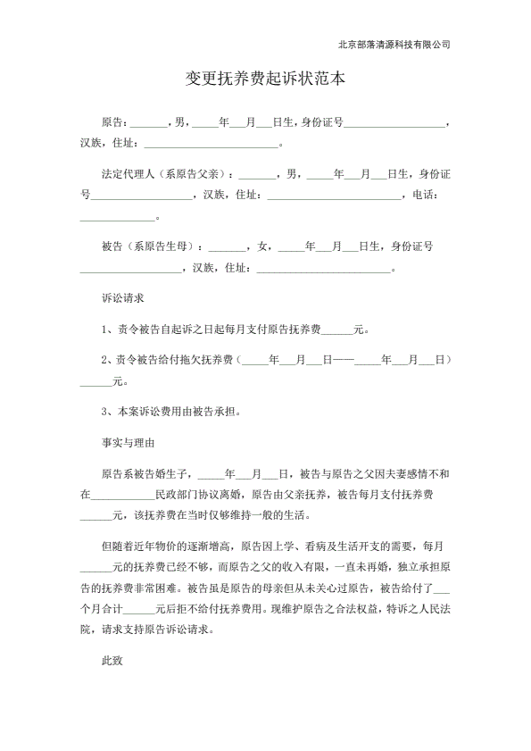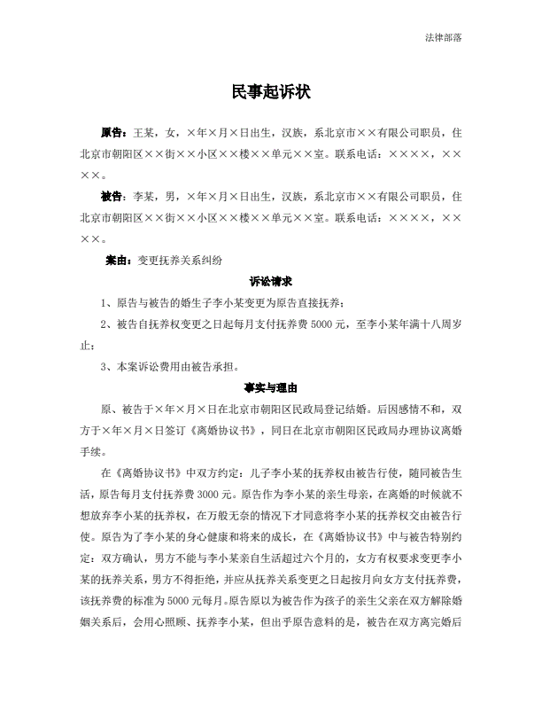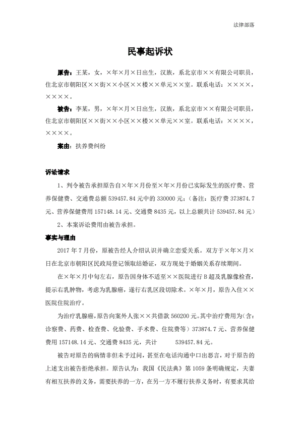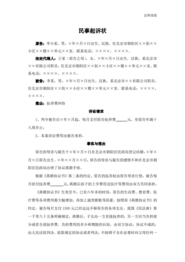 民事起诉状(抚养费纠纷)
