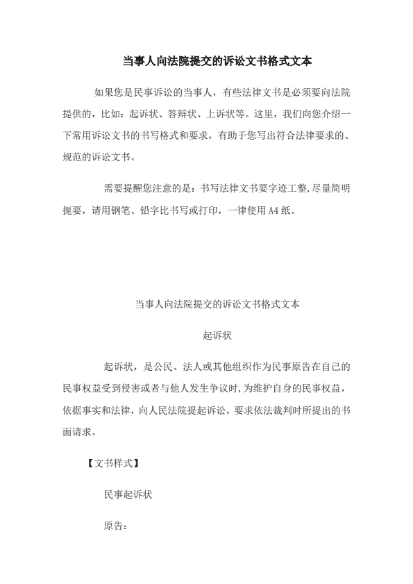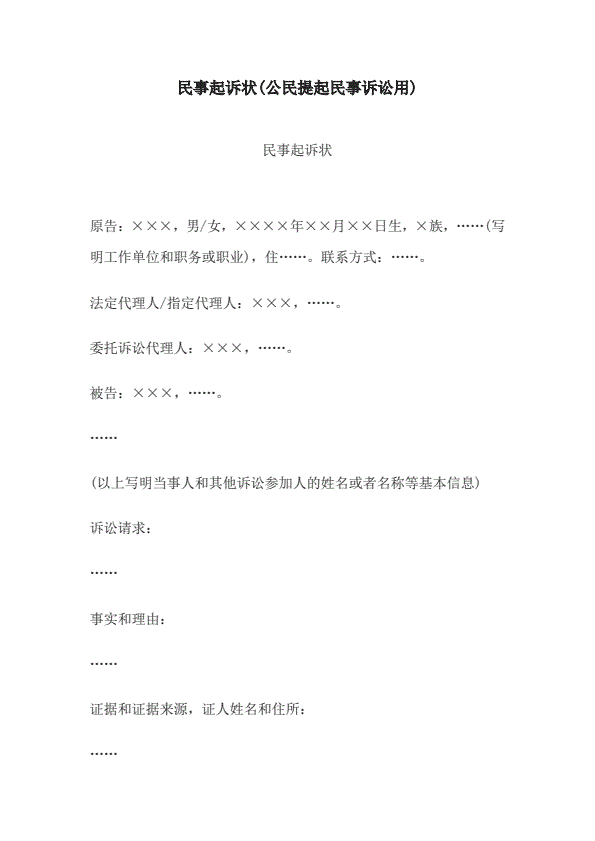 最新起诉状范本