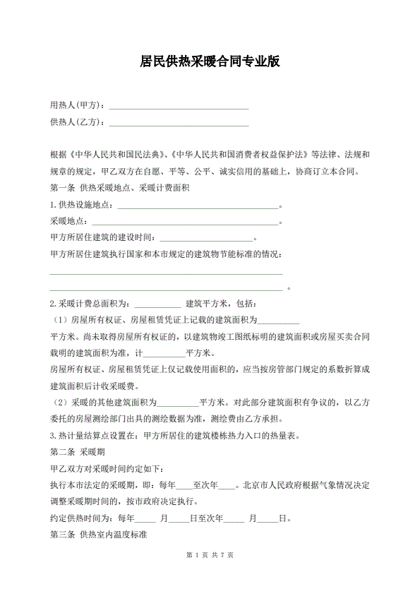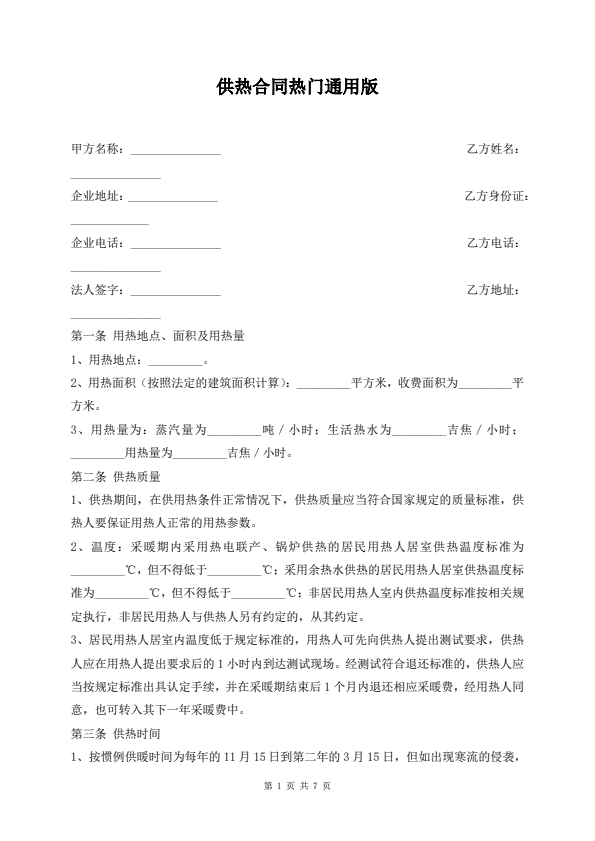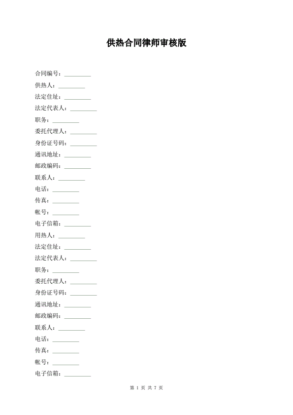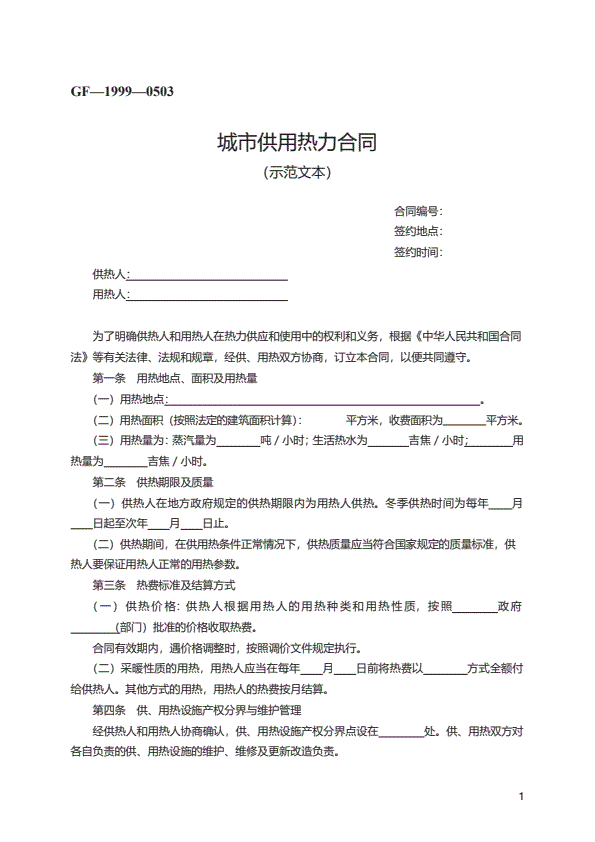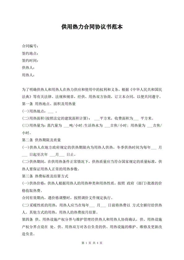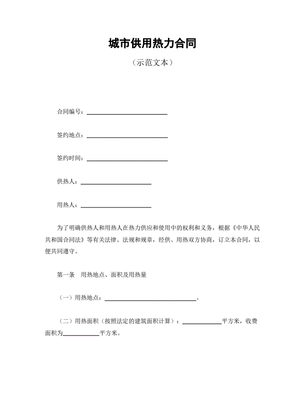 供用热力合同协议书范本