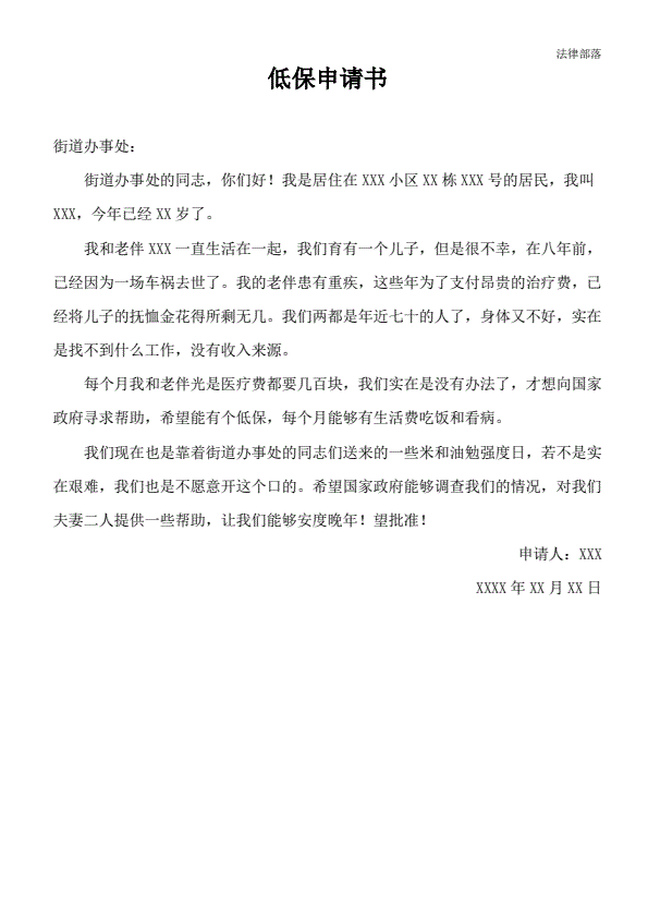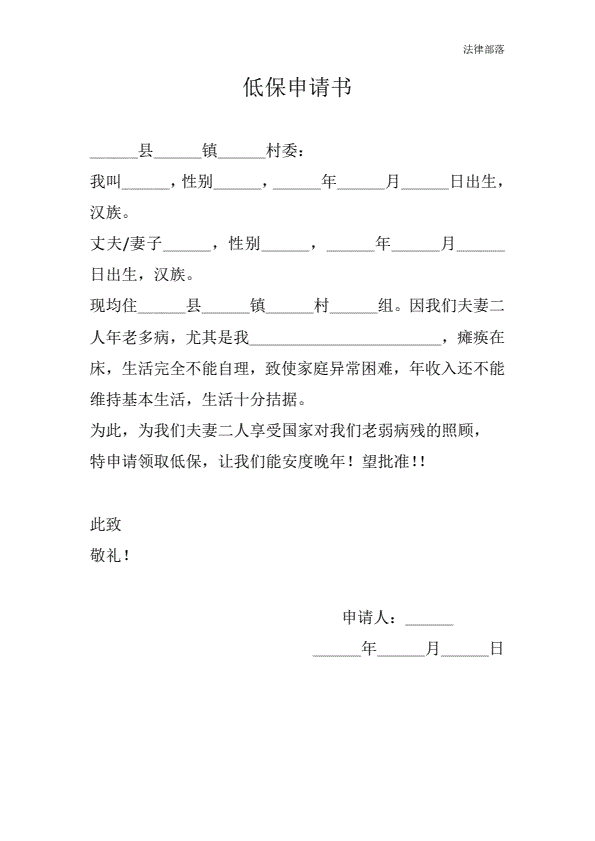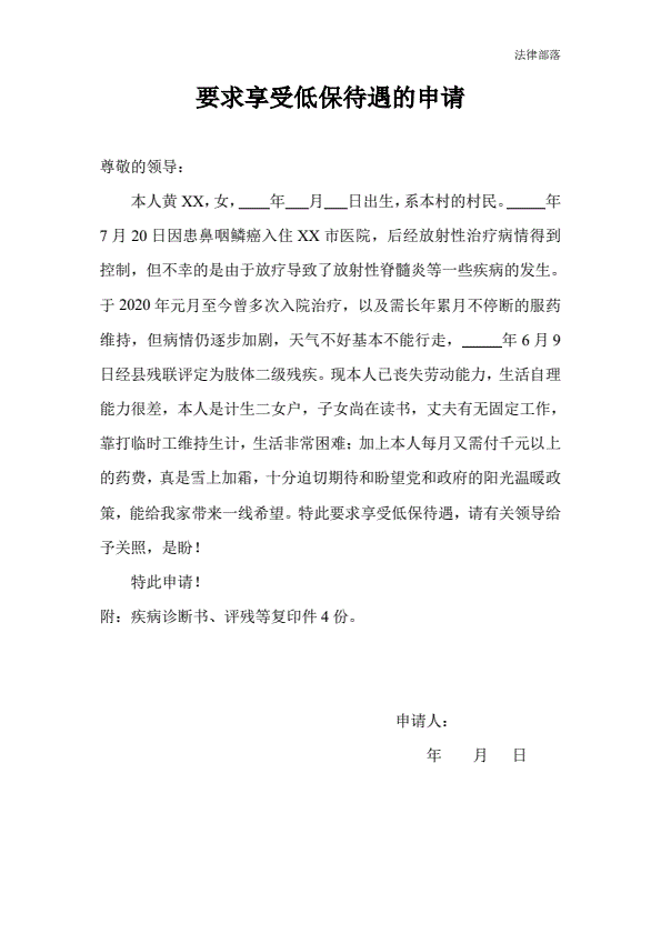 农村低保申请书