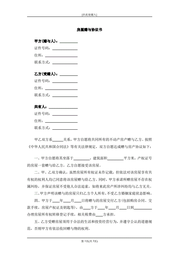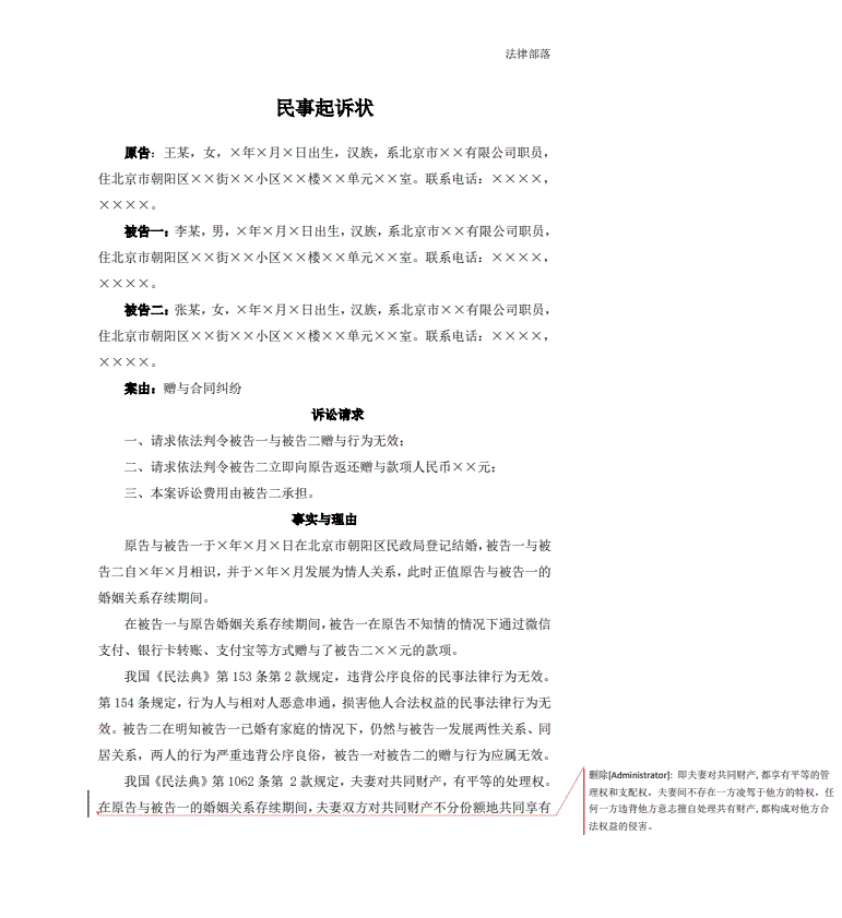 民事起诉状(赠与合同纠纷)