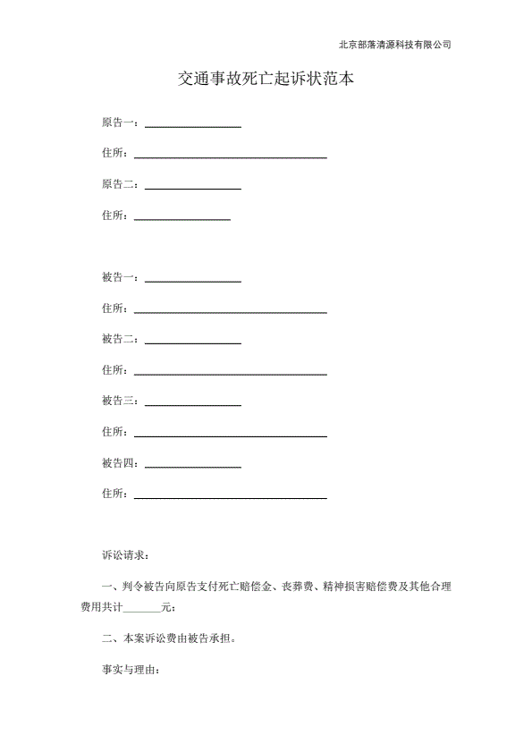 交通事故死亡起诉状范本
