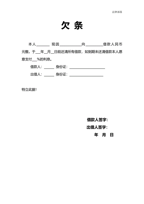 简版欠条