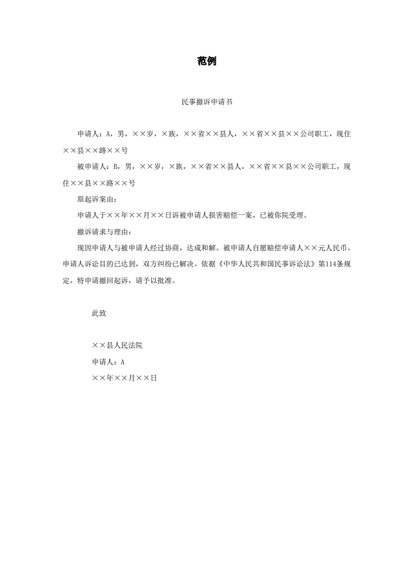 撤诉申请书范本
