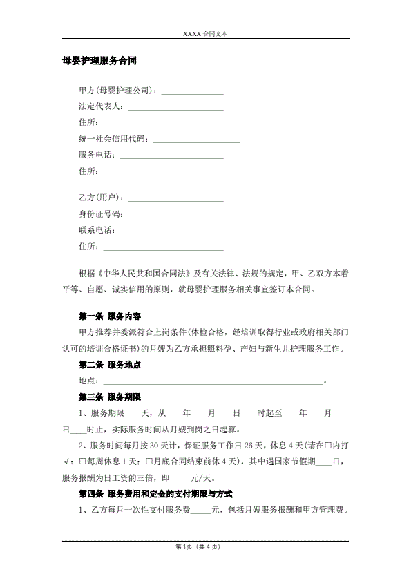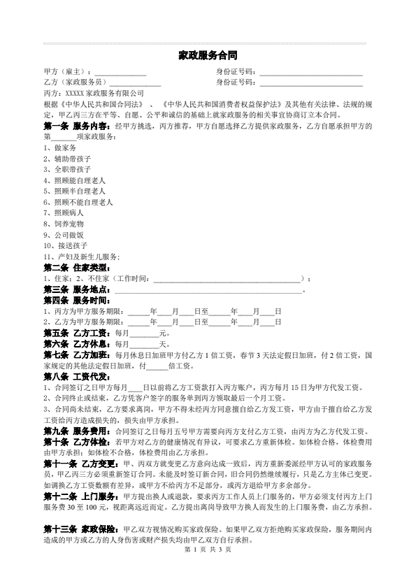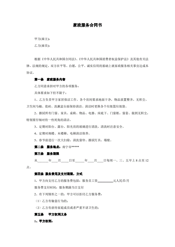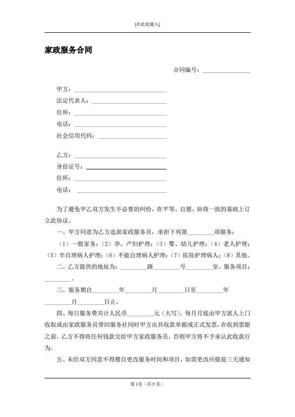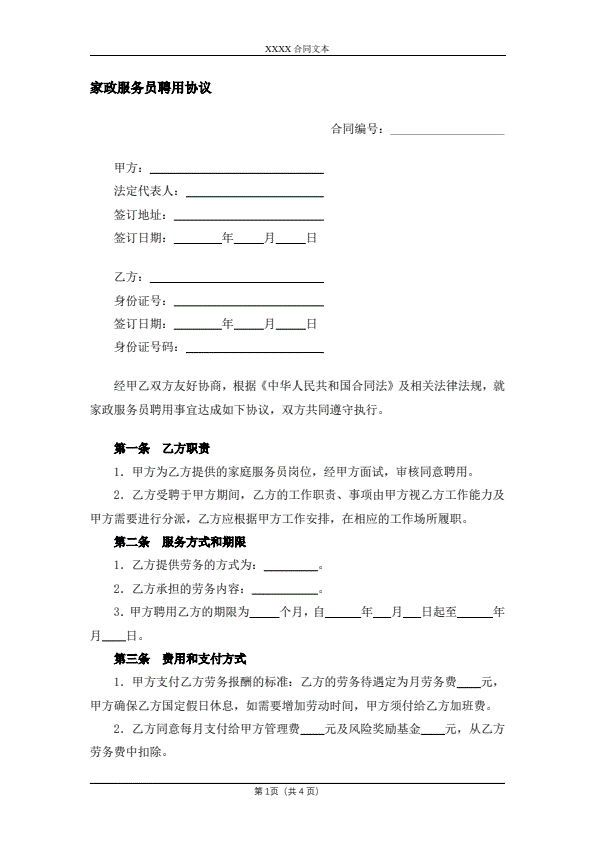 保姆合同