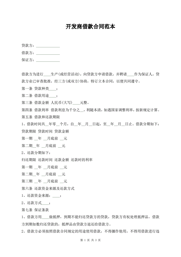 开发商借款合同范本