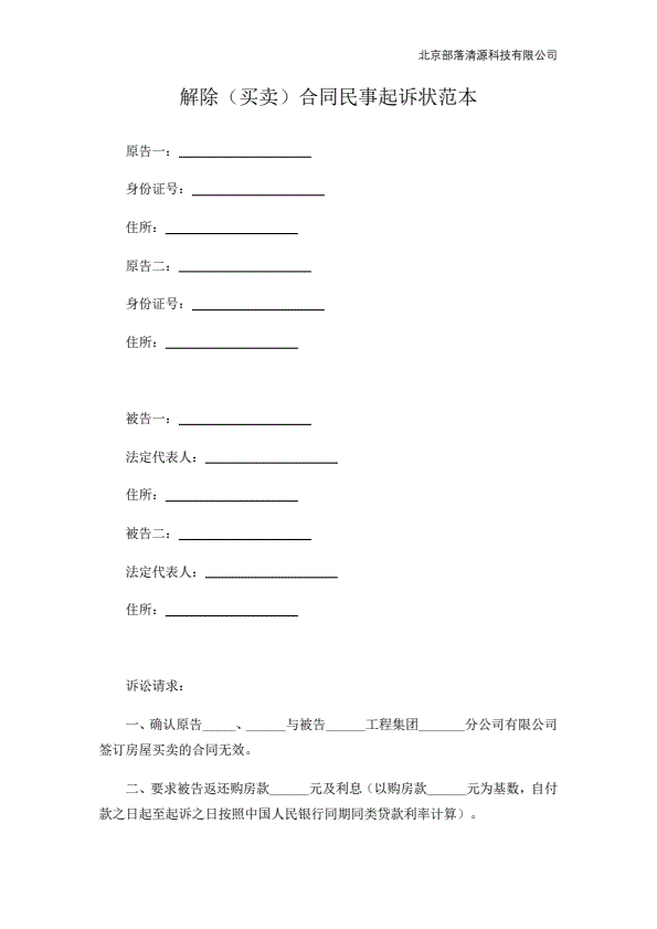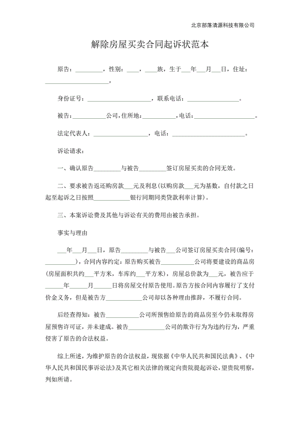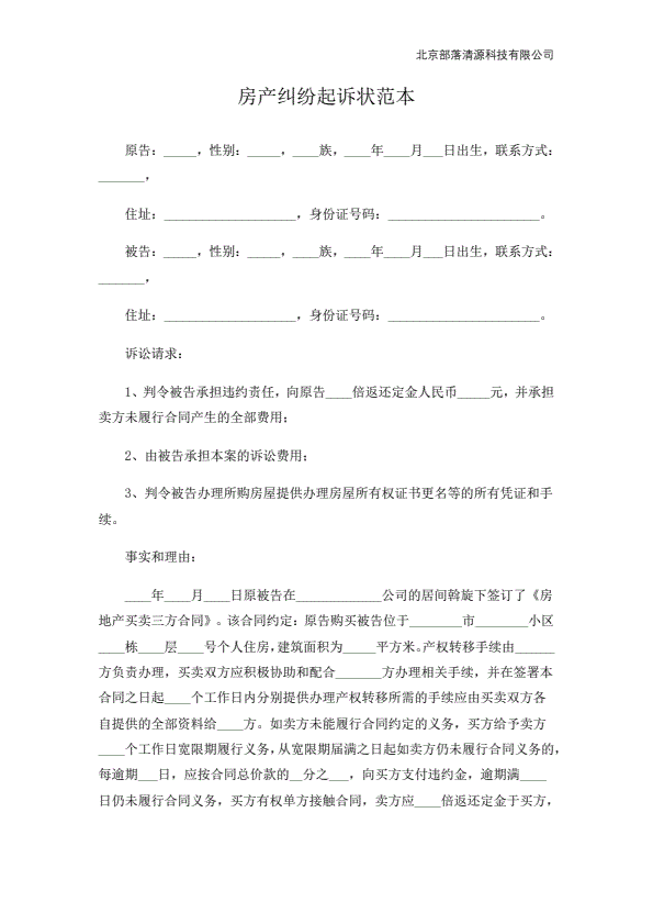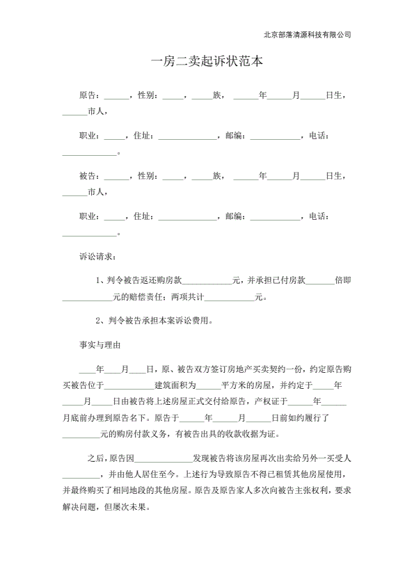 一房二卖起诉状范本