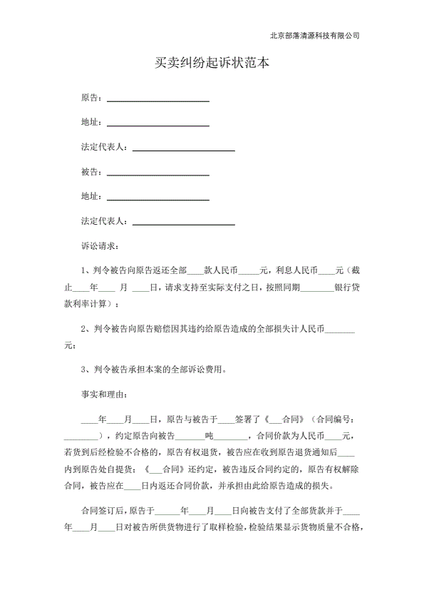 买卖纠纷起诉状范本