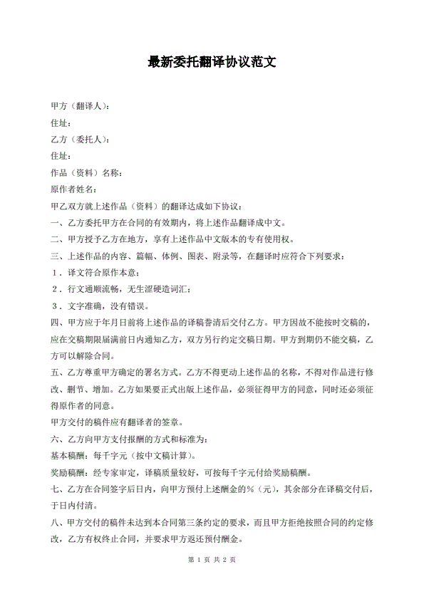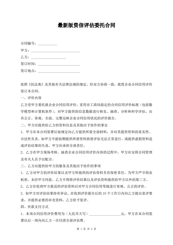 最新版资信评估委托合同