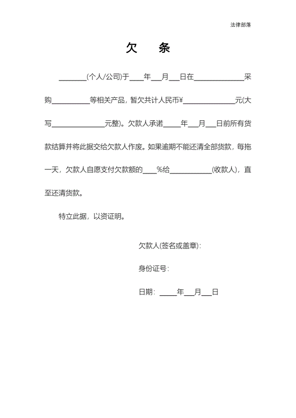 商品款欠条