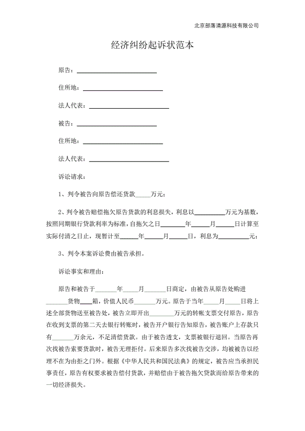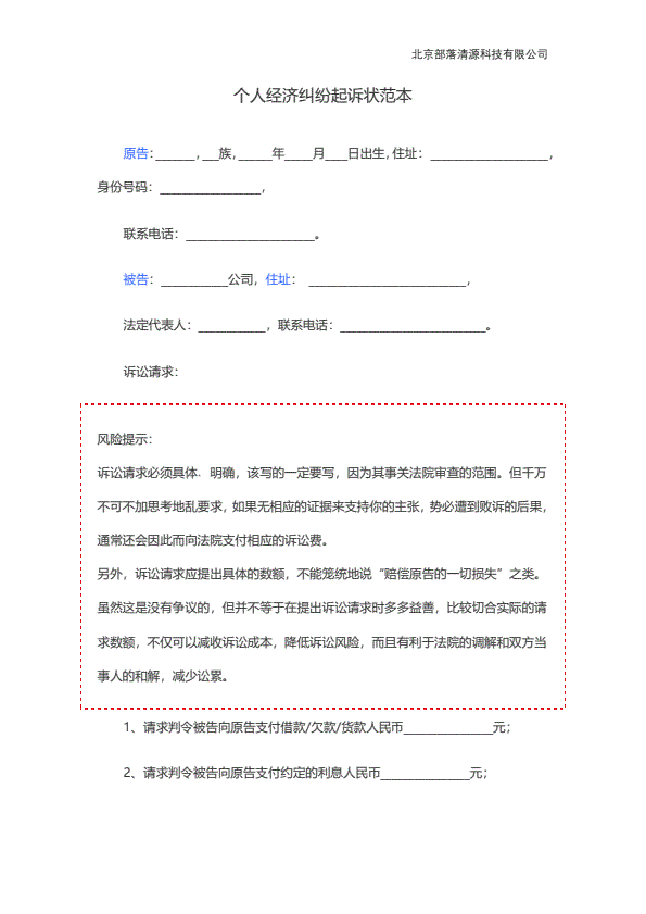 个人经济纠纷起诉状范本