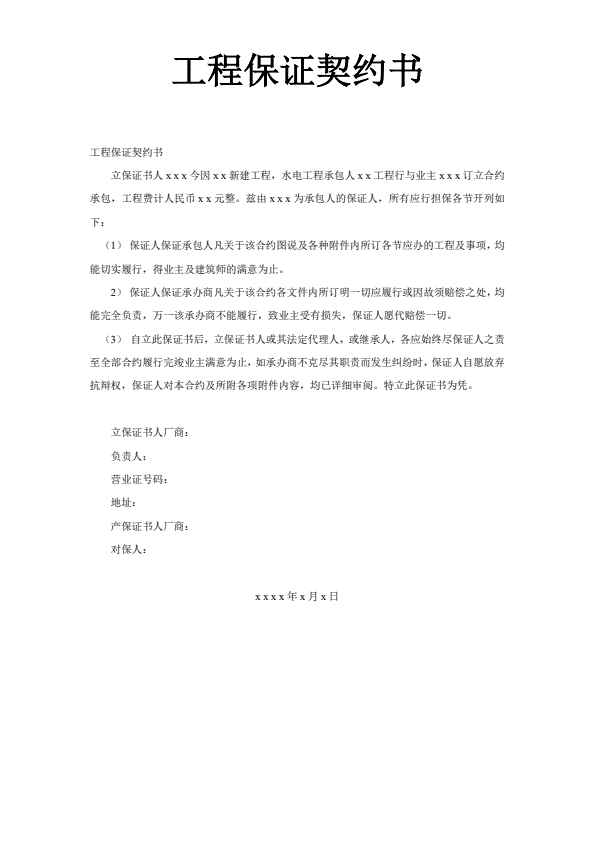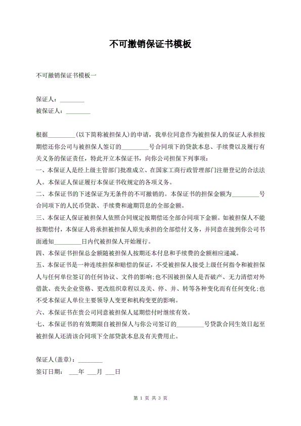 不可撤销保证书模板
