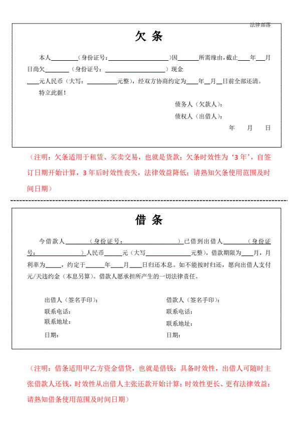 借条欠条模板