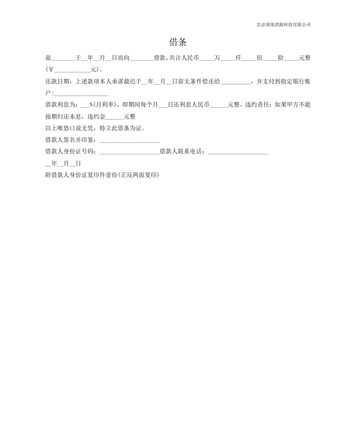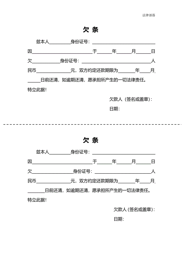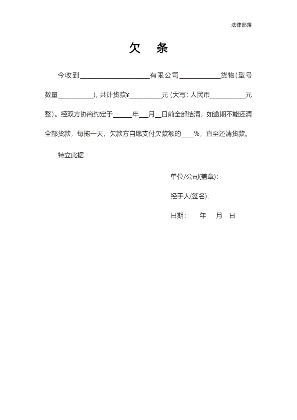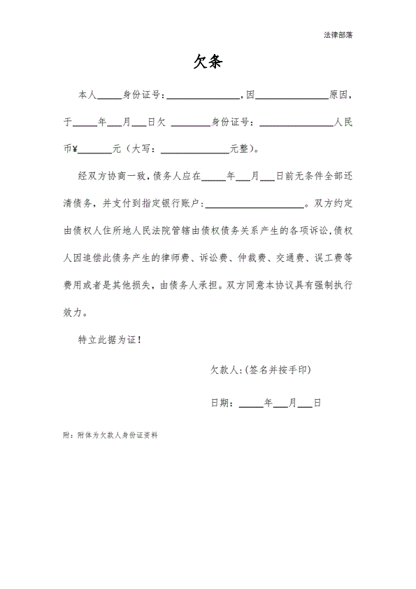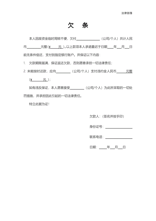 欠条通用模板