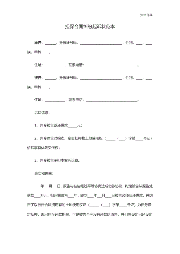 担保合同纠纷起诉状范本