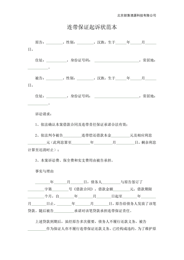 保证合同纠纷起诉状范本