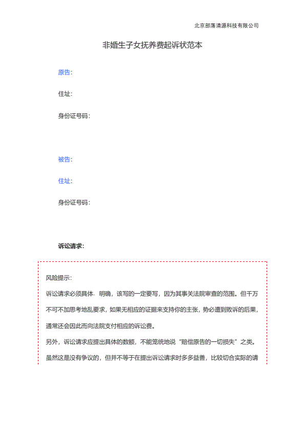 追索抚养费起诉状范本