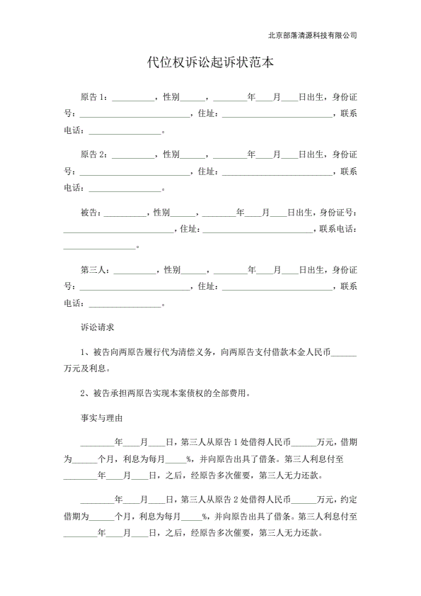 追偿权纠纷起诉状范本
