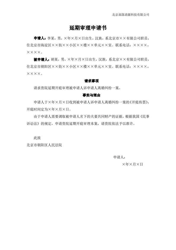 中止审理申请书