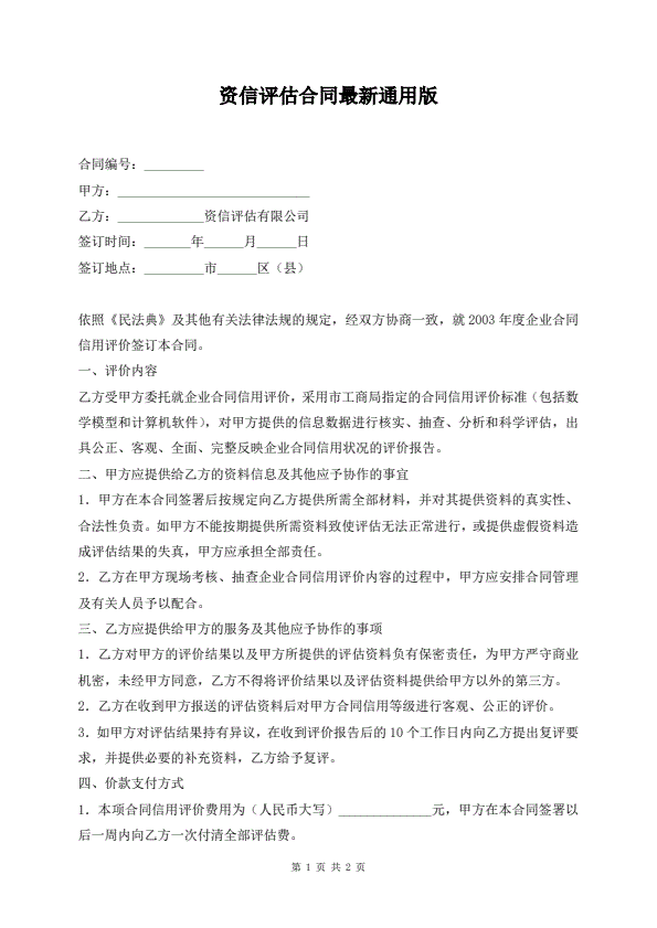 资信评估合同最新通用版