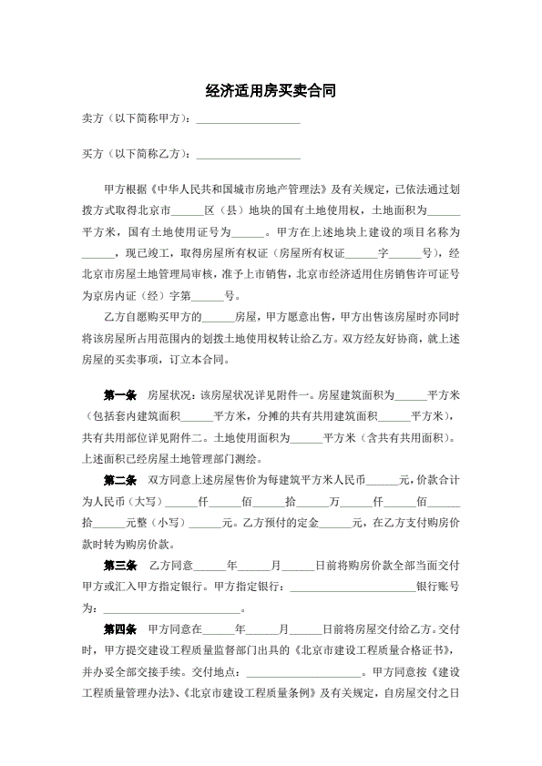北京市共有产权住房现房买卖合同示范文本-修订