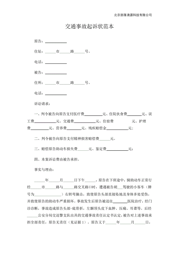 交通起诉状范本