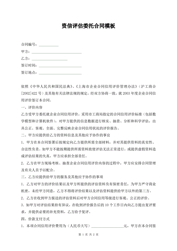 资信评估委托合同模板