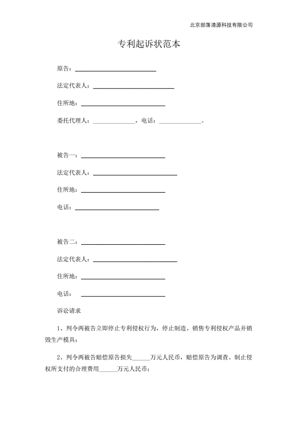 专利起诉状范本
