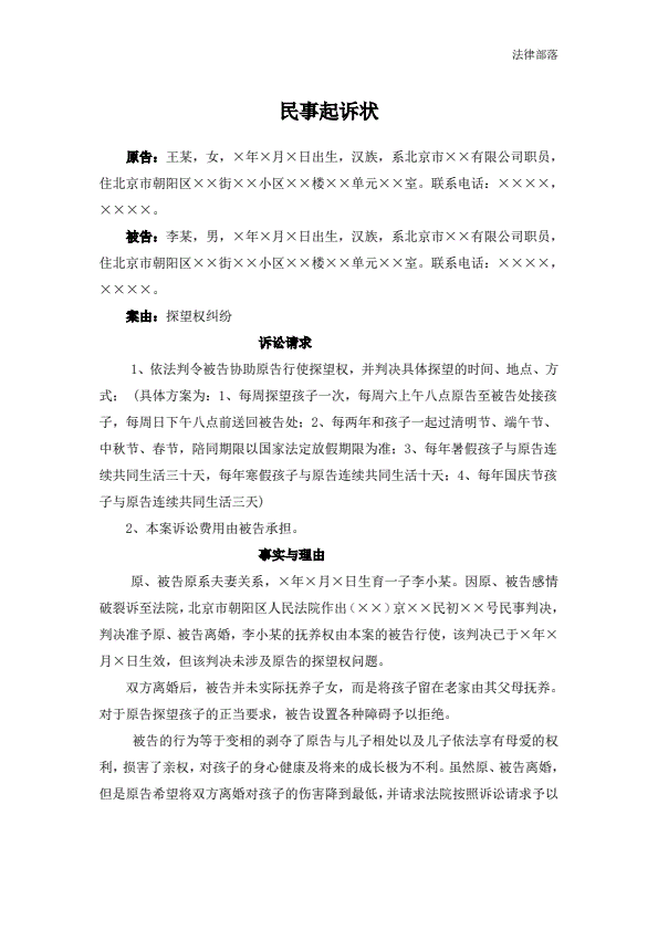 民事起诉状(探望权纠纷)