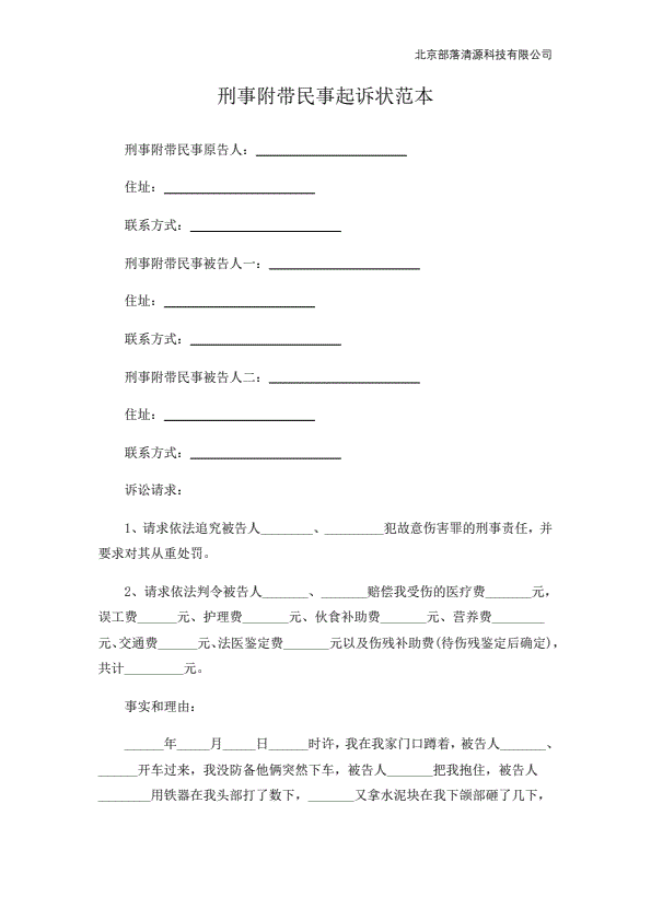 刑附民起诉状范本